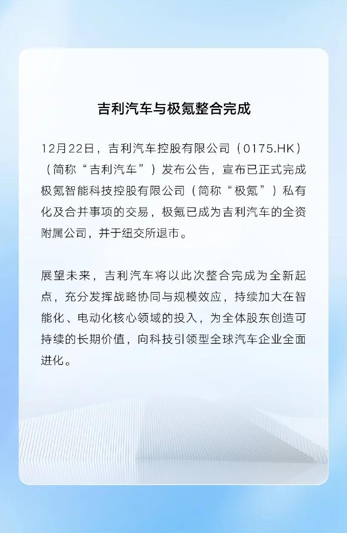 吉利极氪整合官宣!极氪成吉利全资子公司并从纽交所退市 「一个吉利」终于彻底成型! 你觉得这波操作,对吉利、极氪、领克谁最利好?