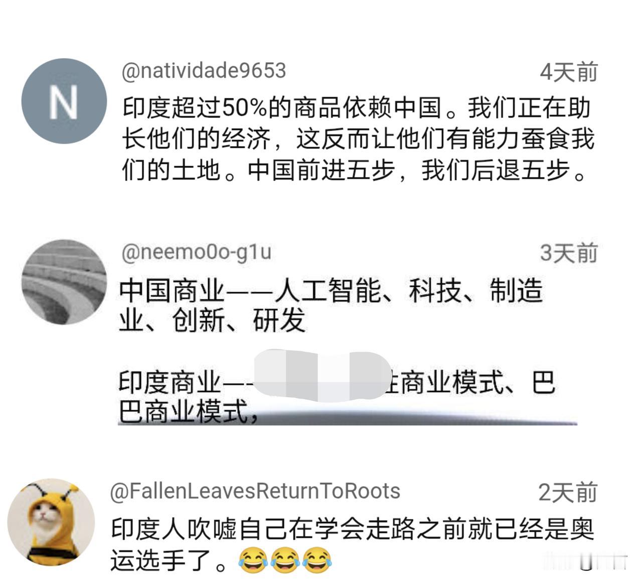 印学者:如果有一天邻居中断两国经贸往来,印度经济将陷入瘫痪。 近日,一位印度学者在受访中表示,印度在经济上对邻居的依赖度超过了51%,包括技术、原材料、设备及关键零部件等。其认为,邻居无需通过坦克攻击印度,因为她在经济上扼住了印度的咽喉。 这位学者的意思非常明确,印度不应该在边境等问题上搞小动作,一旦把邻居激怒,付出代价将是难以承受的。 闻讯后的网友有点不淡定,热议由此引发…