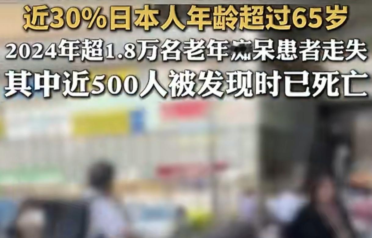 日本30%人口超65岁!1.8万失智老人走失,500人丧命,这教训咱得记牢 日本这老龄化数据看得人揪心!快30%的人都超65岁,成了全球最老的国家,更让人难受的是,2024年就有1.8万老年痴呆患者走失,近500人最后没了性命,全是因为低温、脱水或意外。 这些老人走失后,大多几小时内能找到,可一旦找晚了就出大事。老年痴呆患者记不住家,出门就迷路,遇到极端天气或意外,身体根本扛不住,一条命就这么没了,想想都让人心疼。 日本早就把痴呆症当成重点难题,又是搞GPS定位追踪,又是用AI测早期症状,还弄了护理机器人帮忙,可就算这样,还是没能拦住悲剧发生,足见这事儿有多难办。 其实这不是日本独有的问题,咱们身边老龄化也越来越明显,老年痴呆患者走失的新闻也不少见。谁家里没个老人?现在不提前防备,以后可能就会遇到同样的麻烦。 老年痴呆这病挺难缠,早期就是记不住事儿,慢慢就会认不得人、找不到家,而且没法根治,只能靠药物缓解,关键还得靠家人照护和提前防范,这才是最靠谱的办法。 不管家里有没有老人,这些防走失的实用建议都得记好,关键时刻能救命: 第一,给老人准备“隐形救命符”,在衣服内衬缝上防水布标,写上姓名、家属电话,也能买带定位功能的纽扣或鞋垫,小巧还不容易丢,随时能找到老人位置。 第二,家里装个智能门磁报警器,老人一靠近大门就自动发警报给家属,再在床头贴个大钟表,标注清楚日期,避免老人凌晨或傍晚糊涂时偷偷出门。 第三,多带老人做认知训练,比如一起聊天、玩简单的益智游戏,定期去医院做认知筛查,早发现早干预,能延缓病情发展,减少走失风险。 敬老不是光嘴上说,而是把安全和关怀落到实处,提前做好防范,才是对老人最好的守护。 日本的教训就在眼前,老龄化是大趋势,咱们早做准备早安心。希望每个老人都能安安稳稳过日子,别让走失的悲剧再发生在更多家庭里。