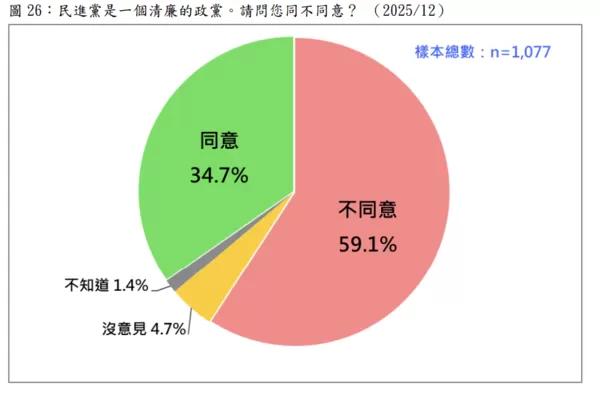 最新民调:民进党形象不清廉也不具执政能力 台湾民意基金会今天(23日)公布“台湾人眼中的民进党”最新民调,结果显示,民进党形象中有四个强项、两大罩门、两个明显有待改进之处,两大罩门是“清廉与执政能力”。 针对清廉度,三成五同意、五成九不同意,不同意者比同意者多24.4%。 游盈隆直言,这项发现传达一个清楚且重要的讯息,在近六成台湾成年人眼中,民进党不是一个清廉的政党。这对一个强调“清廉”为其创党核心价值的政党而言,是极大的讽刺与否定,极严重的警讯。 针对执政能力,四成同意“民进党是最有执政能力的政党”,五成五不同意,不同意者比同意者多15.5%。