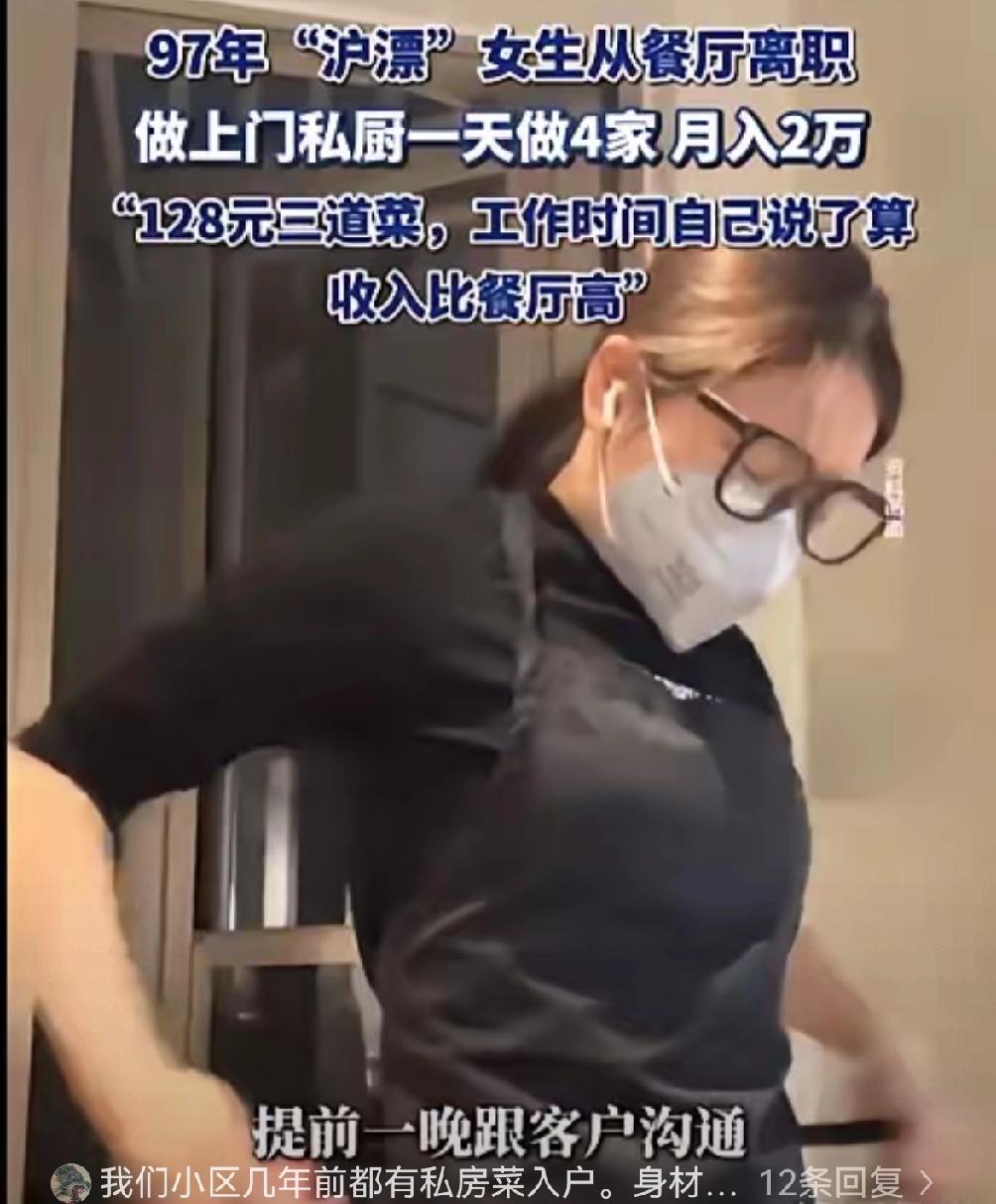 12月21日发布,上海一28岁女生为了赚大钱,竟然从高档餐厅辞职,做上门私厨,专门帮那些不想做饭的家庭,以此获取报酬。她每天去4个家庭,耗时约8小时,128元做三道菜,一个月收入能达到15000到20000。女生坦言:“收入比之前高,时间自由,自己挺满意的。” 没人会平白放弃稳定工作,这姑娘的选择背后全是现实考量。她之前待的高档餐厅,厨师月薪普遍在8000到12000元,看着光鲜,实则累得像陀螺——早上9点上班,晚上10点下班是常态,遇到节假日加台,忙到后半夜是常事,每月还得应付两次菜品考核,根本没自己的时间。 做私厨的收入确实诱人,但高收入藏着不为人知的辛苦。她每天清晨就得赶去菜市场挑新鲜食材,客户家厨房条件参差不齐,有的连合适的炒锅都没有,她得自带全套厨具,锅碗瓢盆加起来几十斤,跨区奔波更是日常。128元三道菜的定价,看着不高,可从食材挑选、清洗切配到烹饪清洁,全是一人包办,遇上客户有忌口或特殊需求,还得提前琢磨菜谱。 这行能火,本质是供需两头凑得巧。上海443万Z世代里,近七成不愿被预制菜应付,又没时间做饭,上门私厨的“透明厨房”和家宴氛围刚好戳中需求。2025年“上门做饭”搜索量涨了320%,叮咚买菜相关赛道月均GMV都破5000万元了,市场早就用脚投了票。 她的客户画像特别清晰:徐汇区的新婚夫妇要仪式感,静安区的银发族要低糖营养餐,浦东的健身达人要高蛋白定制。有次给独居老人做饭,老人牙口不好,她特意把菜炖得软烂,还额外做了份杂粮粥,后来老人成了她的固定客户,每周都约两单。这种细节里的温度,是餐厅流水线做菜给不了的。 但风光背后全是隐形成本。社保得自己缴,每月至少1800元,交通费、工具折旧费都是不小的开支,真正到手的净收入并没有账面那么夸张。更关键的是风险,上门服务涉及“入口”“入室”,没有明确的行业规范,万一出现食品安全问题,或者服务中造成财物损失,权责界定特别麻烦。 她能做得顺,藏着自己的小心思。只接3公里内的订单,减少通勤时间;提前和客户确认食材偏好,避免浪费;自带健康证和厨师证,让客户放心。现在很多私厨都这么干,杭州还有平台给厨师配了商业保险,可这种规范化模式还没普及,大多数从业者还是单打独斗。 这姑娘的选择,其实是当下灵活就业的一个缩影。有人羡慕她的自由,有人心疼她的辛苦,可职业本就没有标准答案。上门私厨市场规模预计2025年能突破1500亿元,前景虽好,但行业标准、安全保障这些问题不解决,想长久做下去并不容易。 高收入和高风险从来都是绑定的,她现在满意,是因为暂时扛住了压力。可随着越来越多人涌入这行,竞争会越来越激烈,如何保持客源、规避风险,都是要面对的现实问题。 各位读者你们怎么看?欢迎在评论区讨论。