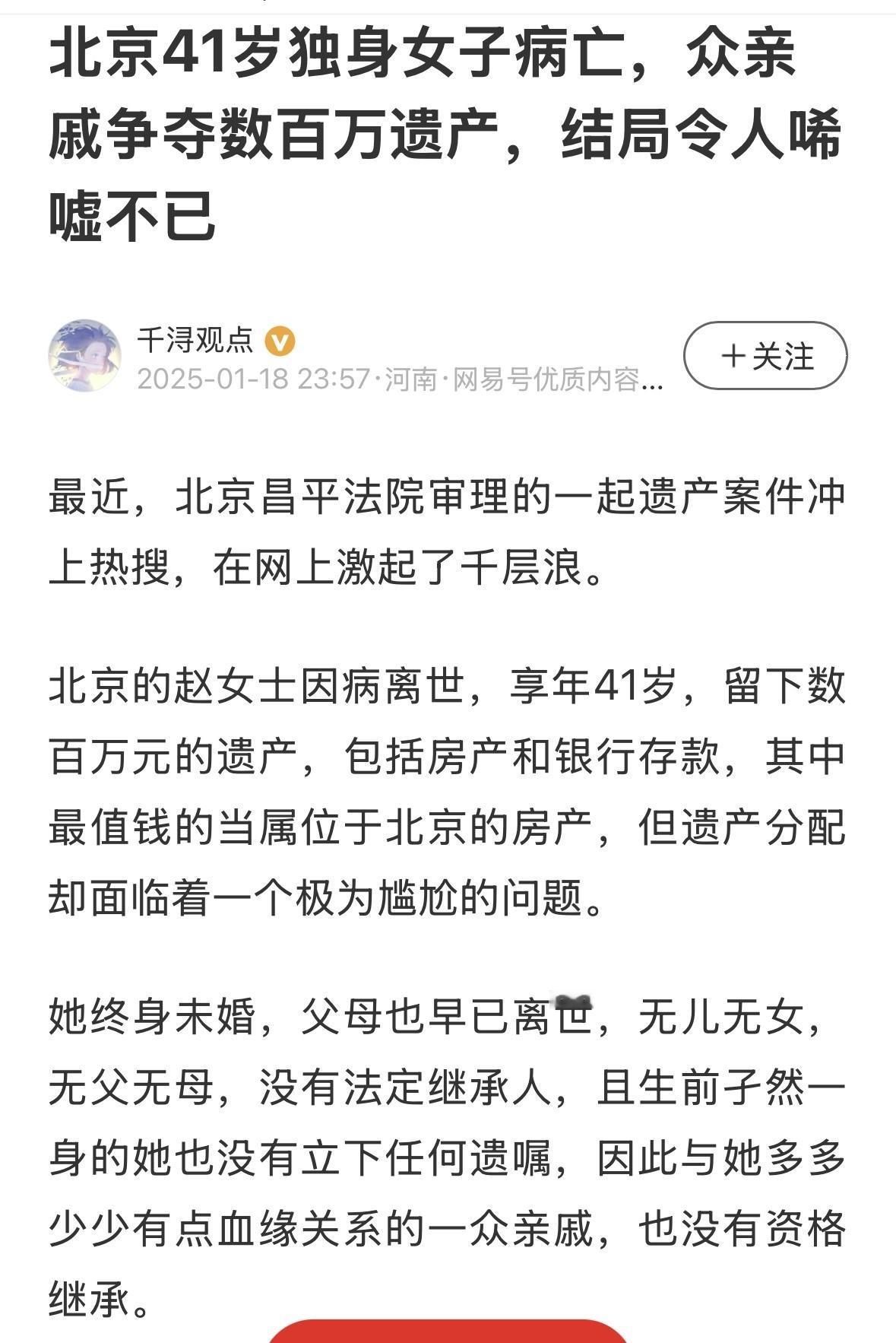 这种事情可能会越来越多,很乏一笔财产,没有继承人,住院不容易,身后事,还有很大困难。