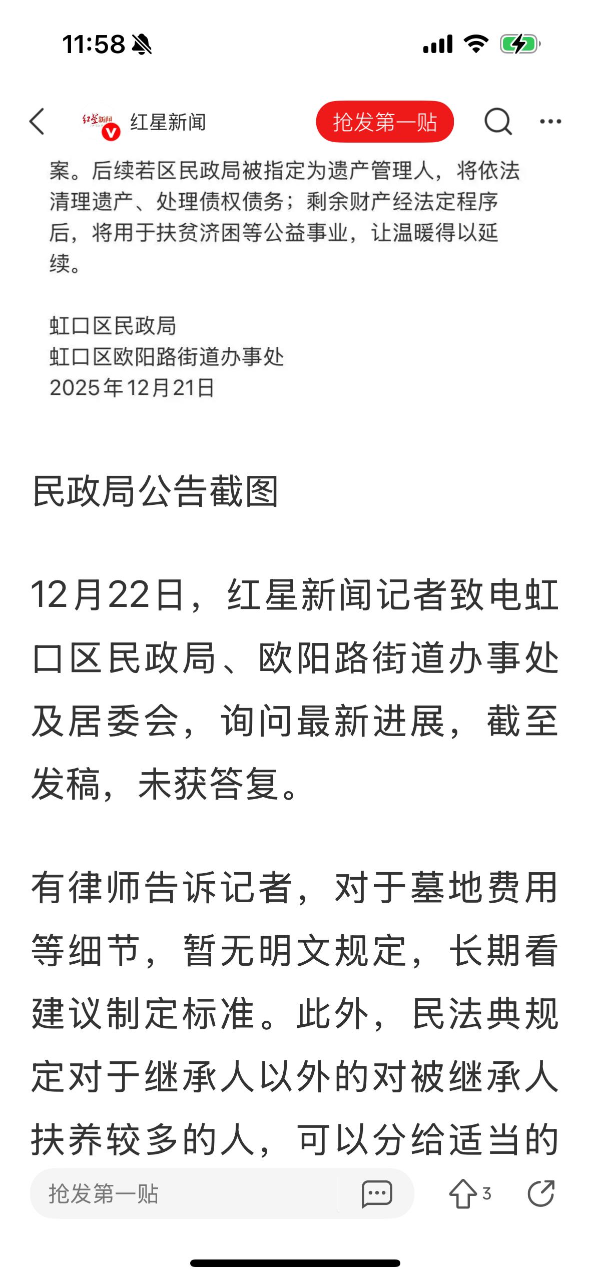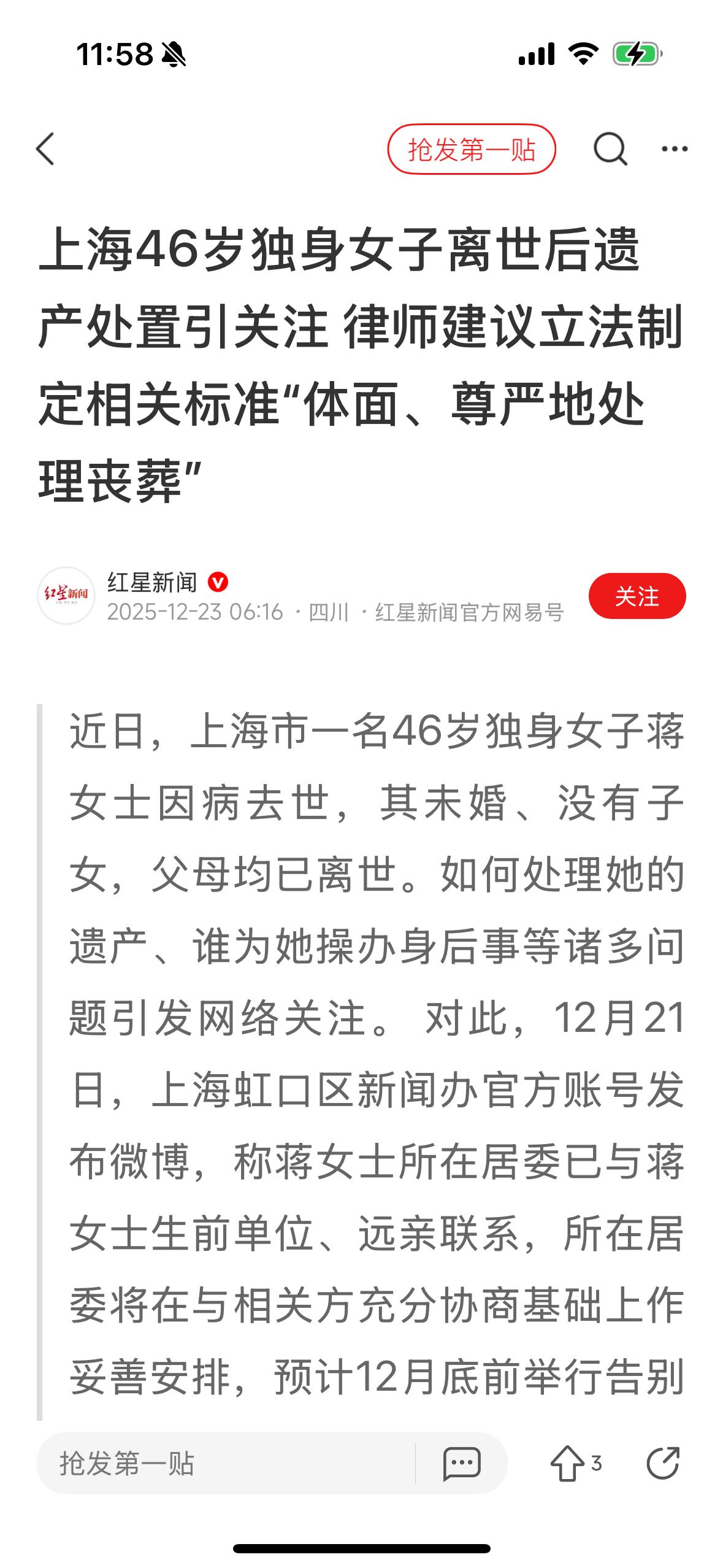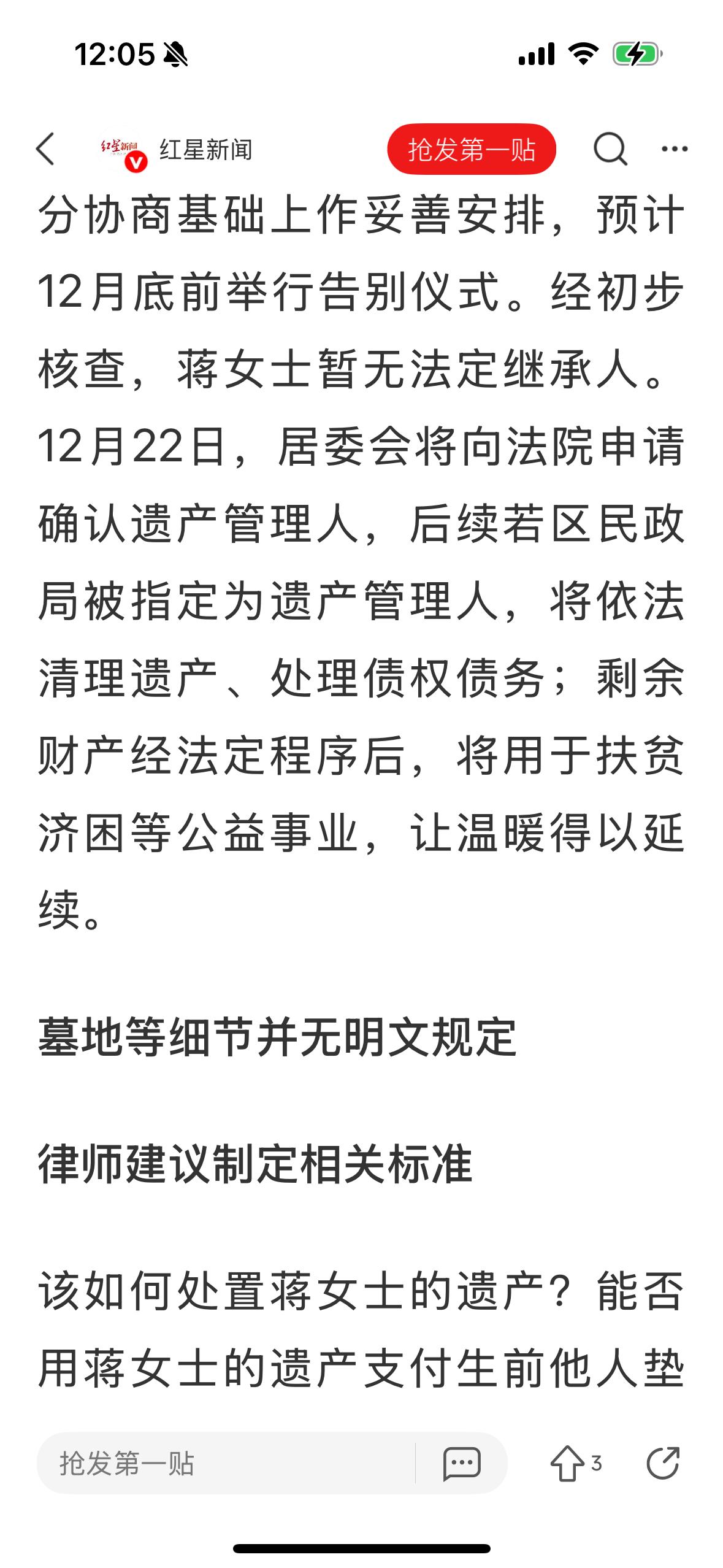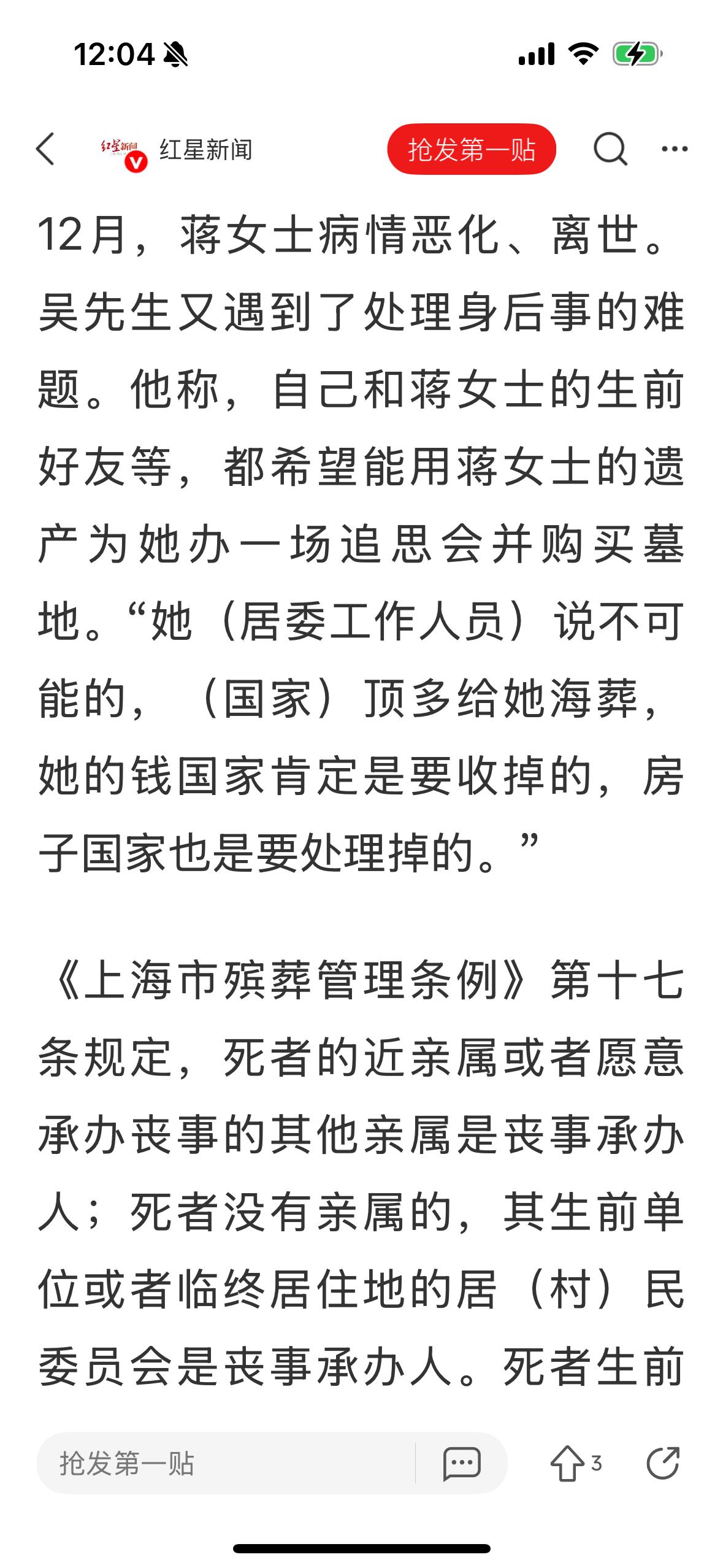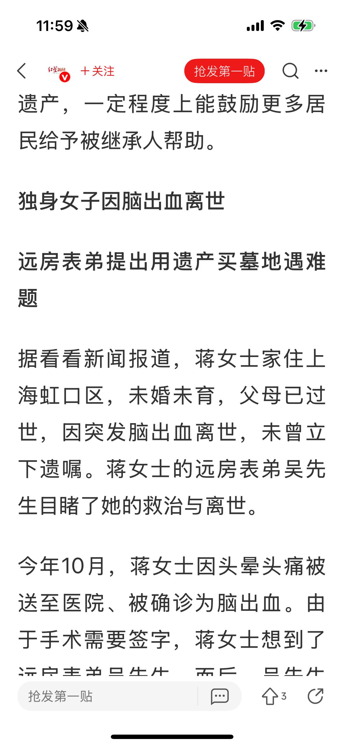 这种事情可能会越来越多,很乏一笔财产,没有继承人,住院不容易,身后事,还有很大困