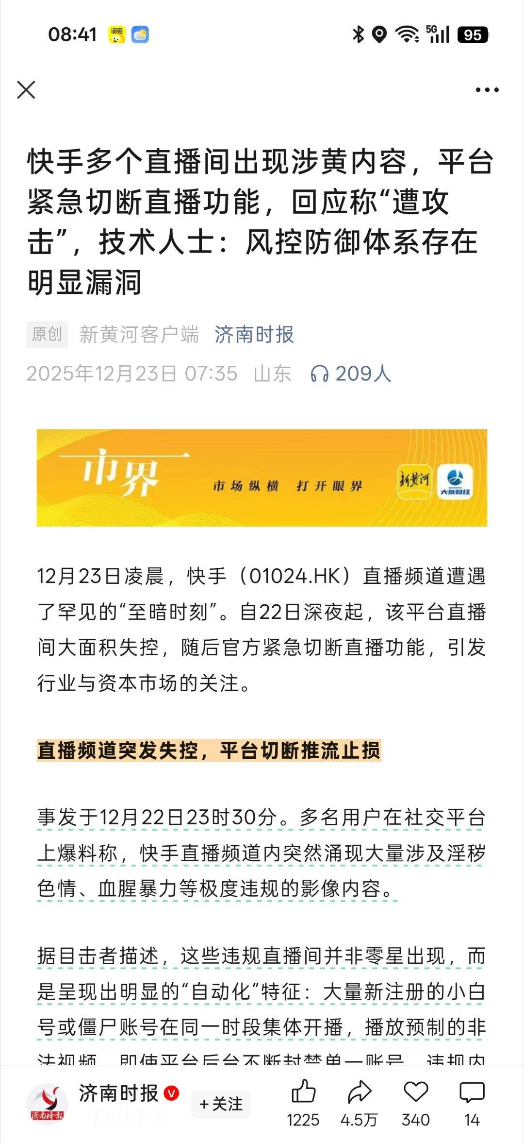 快手遭到黑灰产攻击这将引起的是大家对于快手的“信任的崩塌”!