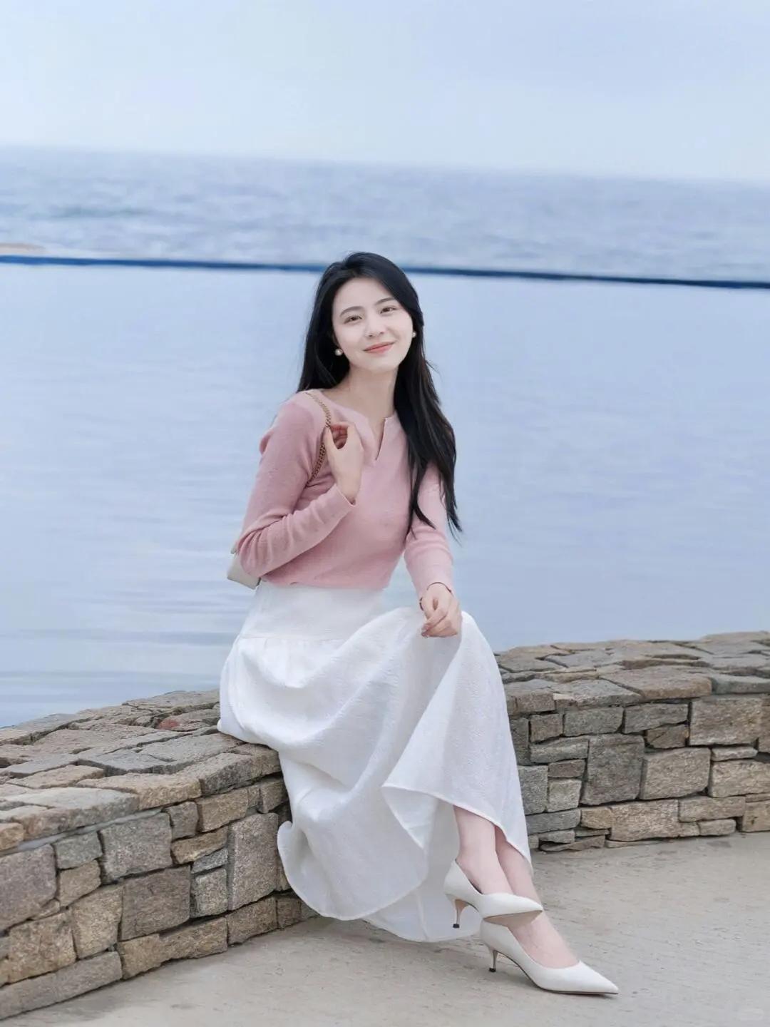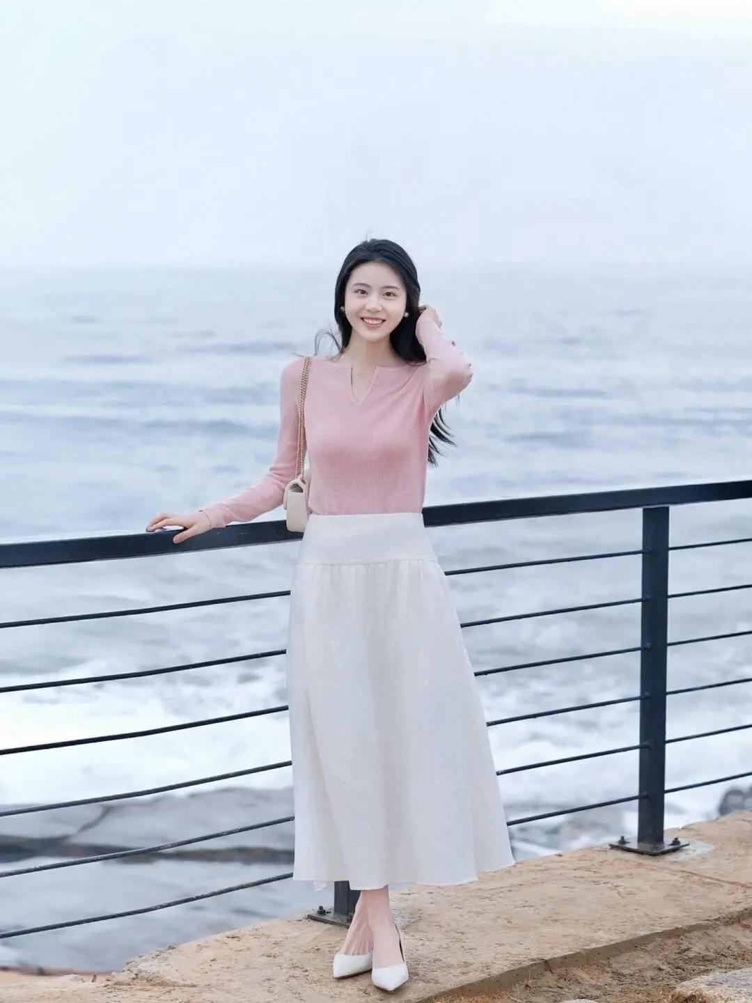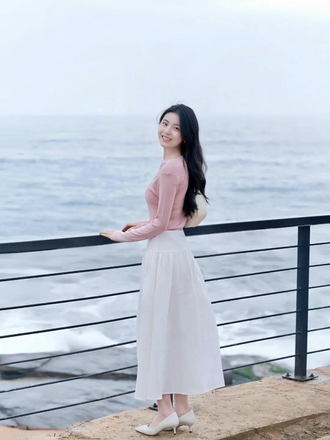 一个人海边拍照,7个动作,上镜温柔漂亮,自然好看显身材