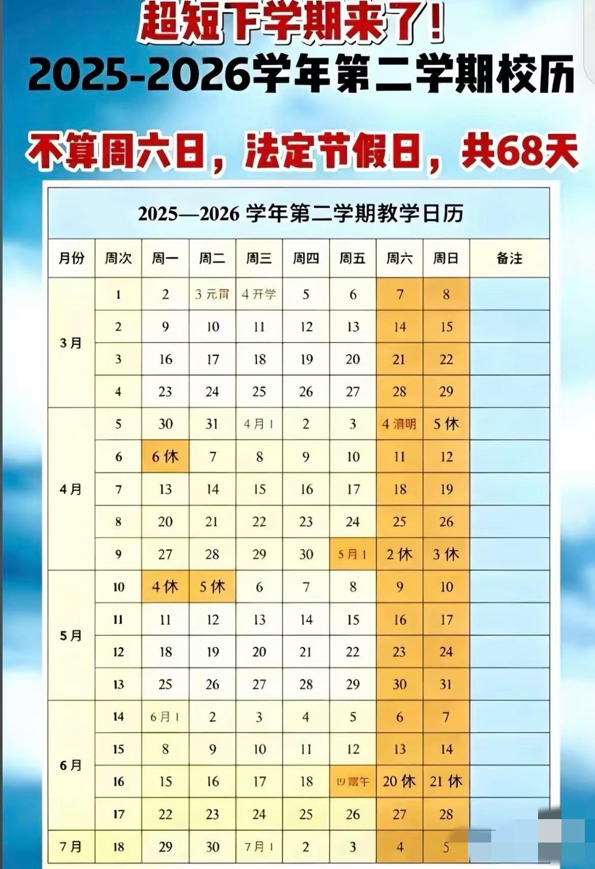 这是有史以来唯一没有调休的最短学期呀 清明、五一、端午节 你们可是长心了 组团周五周末过节 这是有史以来唯一没有调休的学期呀!