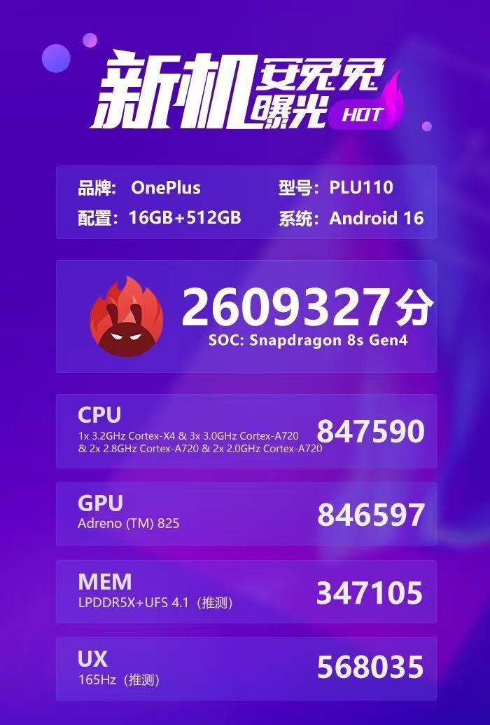 一加Turbo的骁龙8sGen4跑分来了!跑分突破260W,这太行了!!