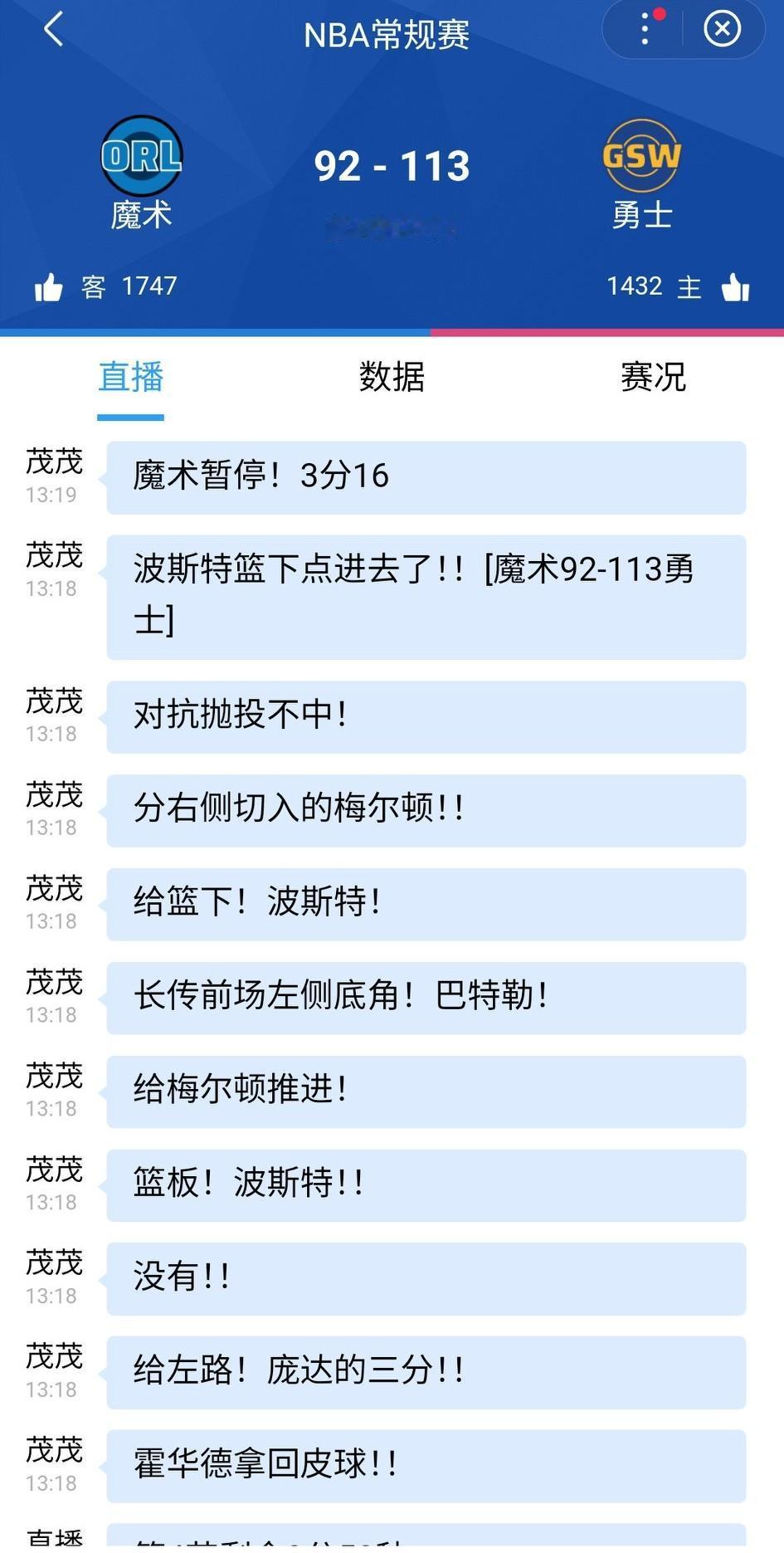 勇士113-92魔术,勇士这场比赛应该进入垃圾时间了,魔术暂停,估计会换下全部主力。 开拓者这边越来越激烈了,开拓者将比分缩小到了4分,势头不在活塞这边。 西部球队真的强啊,对阵东部双雄这两场比赛都要大逆转了!