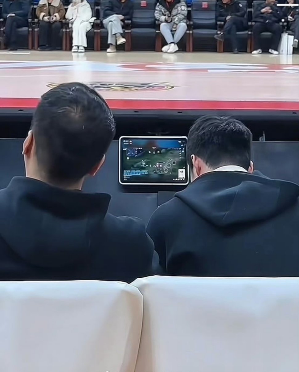 昨晚吉林对阵宁波,宁波男篮替补席的工作人员面前的平板正在播放王者荣耀直播