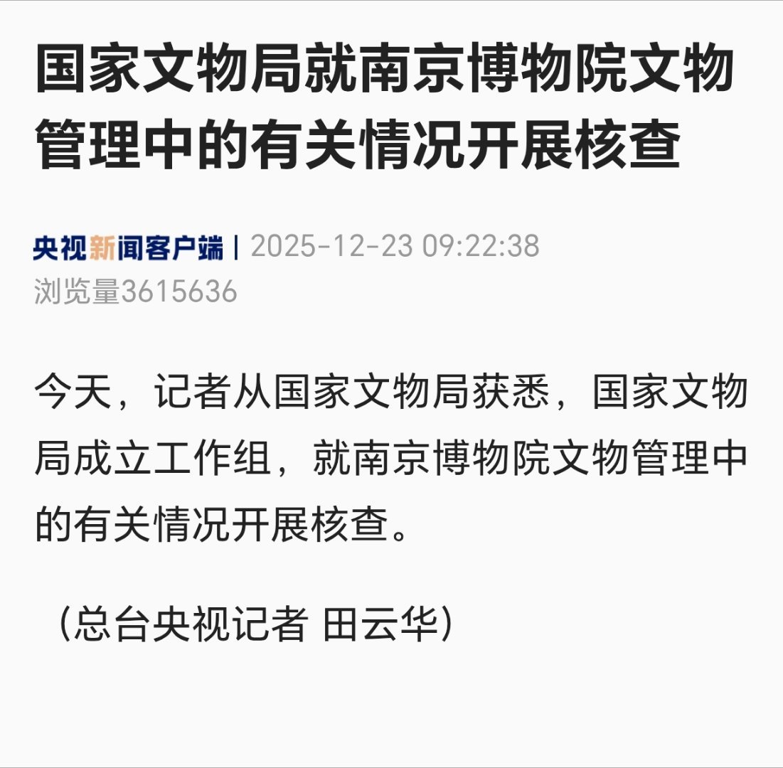 官方通报南京博物院事件国家文物局成立工作组 官方出面了:国家文物局就南京博物院文物管理中的有关情况开展核查