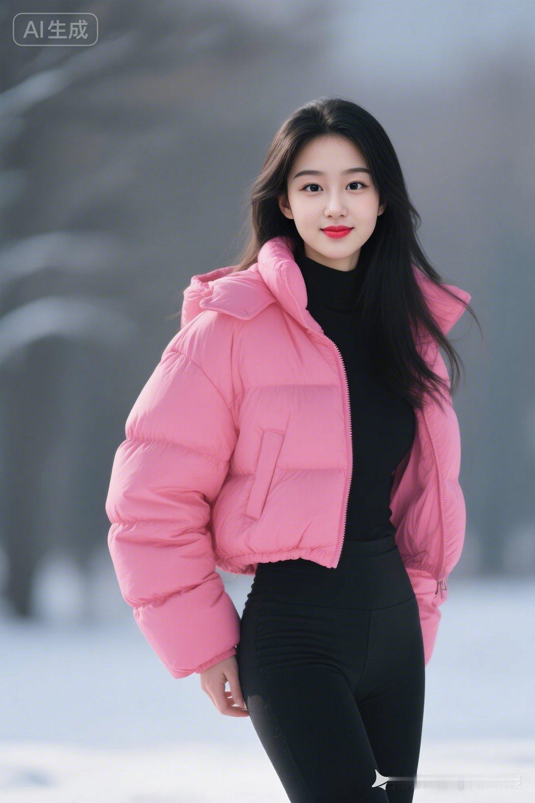 冬日暖阳下的粉色羽绒服,甜美又温暖!🌞💕
