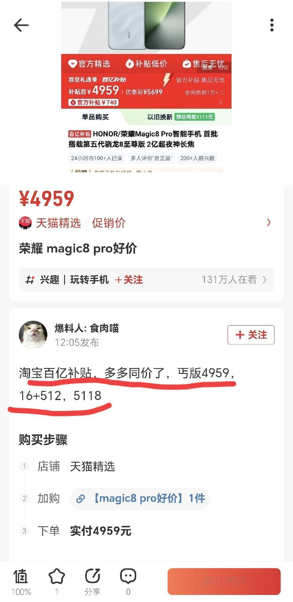 万万没想到[捂脸]荣耀Magic8 Pro这么快就杀到5000以内了,即便是16+512版本也才5000出头,这是要彻底掀桌子了吗? 说实话,荣耀Magic8 Pro除了“微曲屏”有部分争议,其他方面真的没得挑,性能、影像、续航、音质都是顶级,而且还有独家的3D人脸识别+3D超声波指纹识别组合,现在这样的“惊爆价”你们难道不心动[灵光一闪]