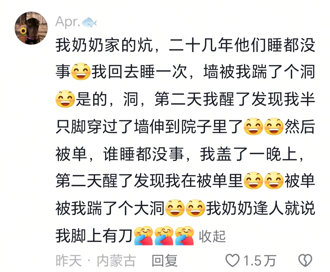 谁睡都没事,我盖了一晚上,第二天醒了发现我在被单里“被单被我踹了个大洞““我奶奶逢人就说我脚上有刀