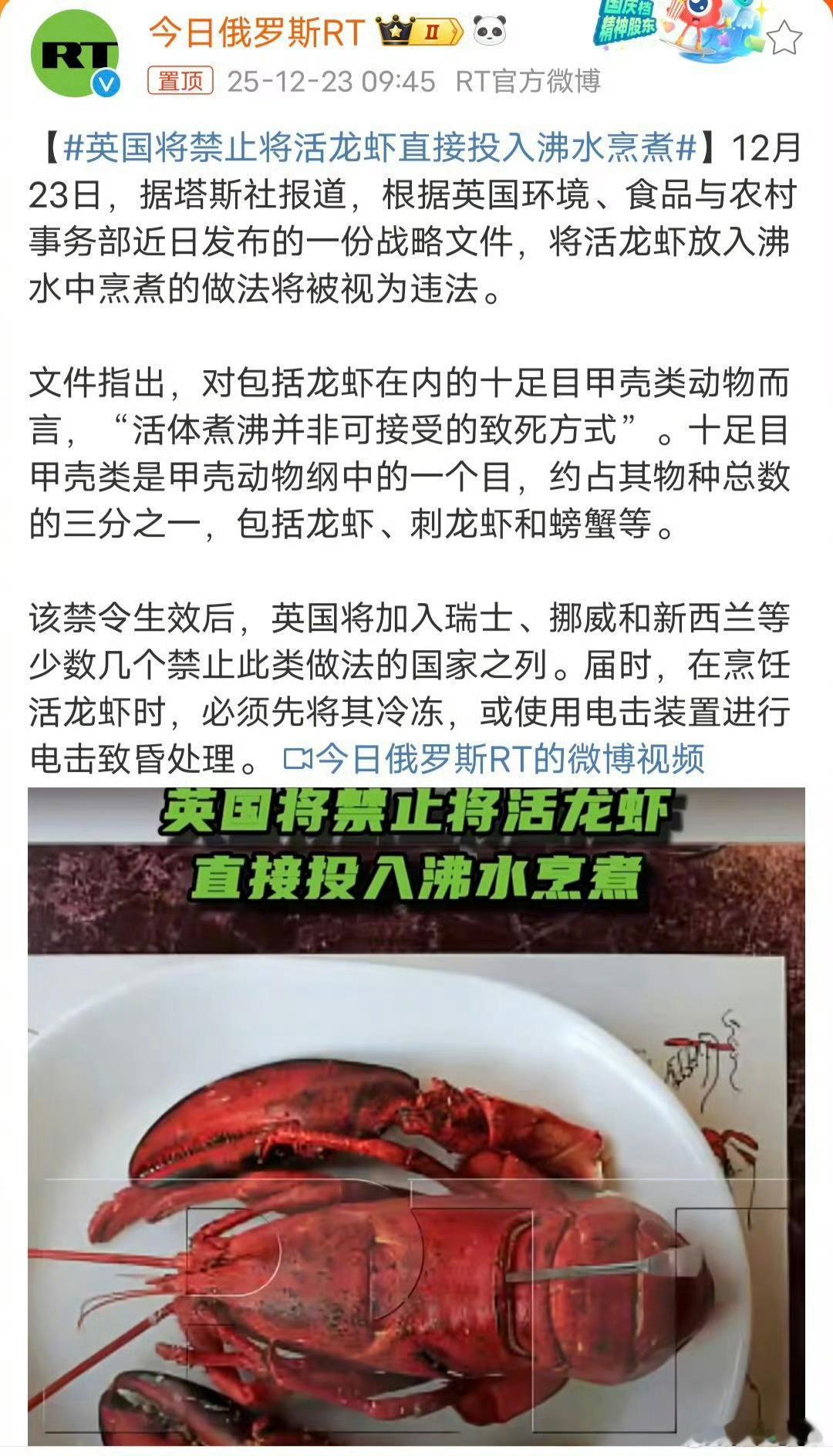 英国将禁止将活龙虾直接投入沸水烹煮那咋了?龙虾能报警还是咋滴?要知道从心理学的角度来思考这个问题的话,那人们在私下里只会更多的让活龙虾直接下锅,因为这个样子可以满足人们一点点的叛逆和禁忌的心理~
