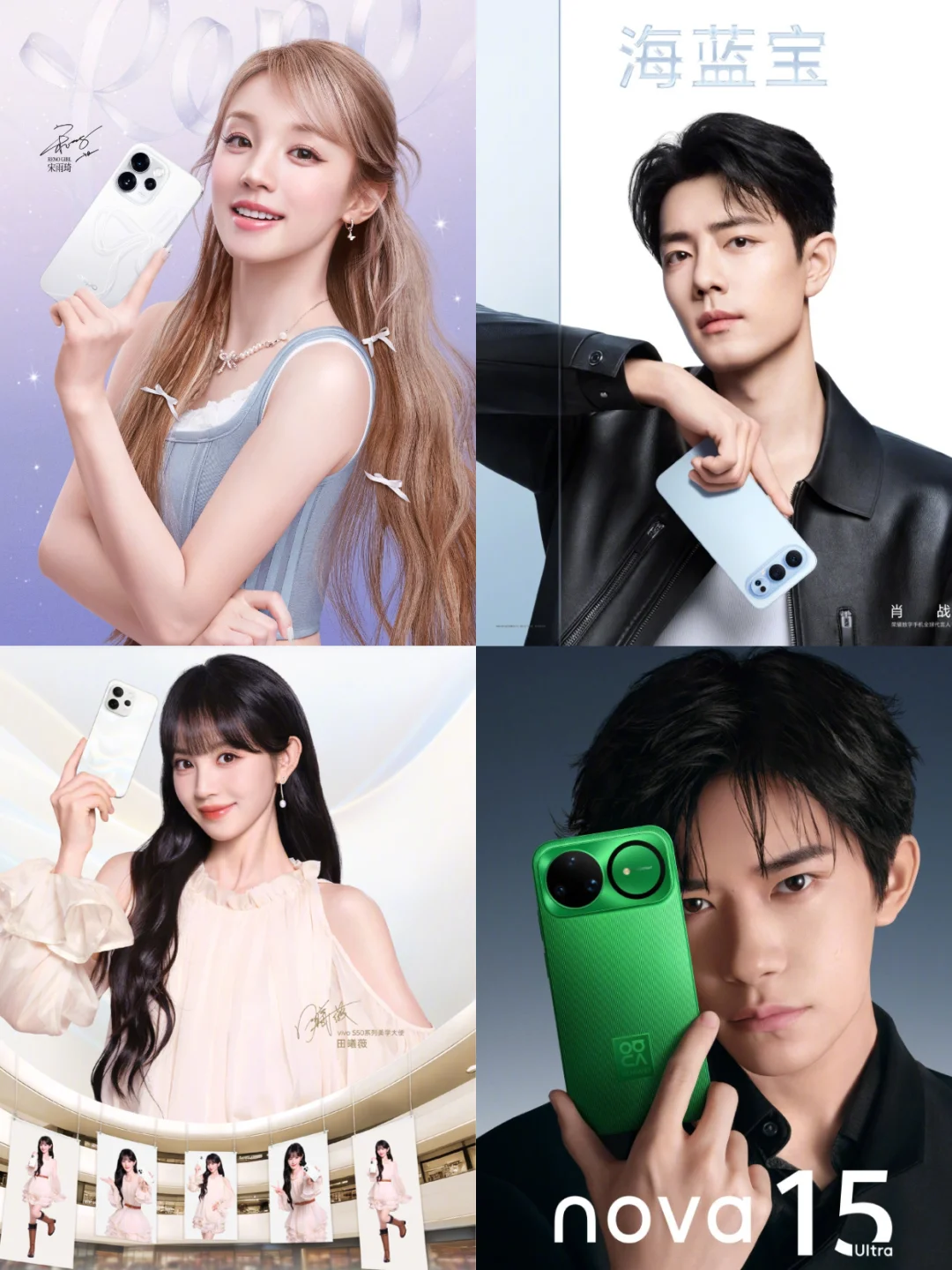 各家代言人颜值都好高呀,你们觉得这四家的手机设计,谁家的更好看呢?