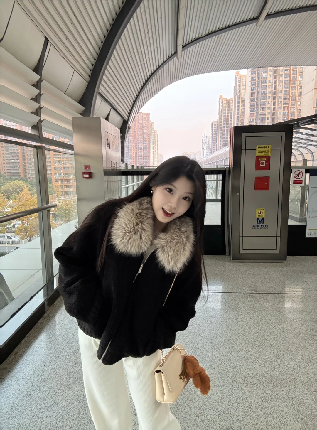 美女感 温柔穿搭 毛毛外套 羽绒服 冬天还得是皮草穿搭