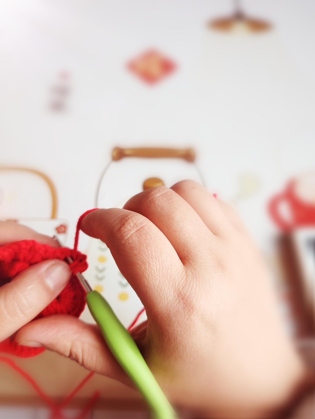 尝试网上教的左手持线、右手握针的钩织方法,但左手实在太僵硬,钩一朵花手就痛得不行。 于是换回自己习惯的方式——右手持线也握针,瞬间舒服多了。果然,手工这件事,还是适合自己的节奏最好。