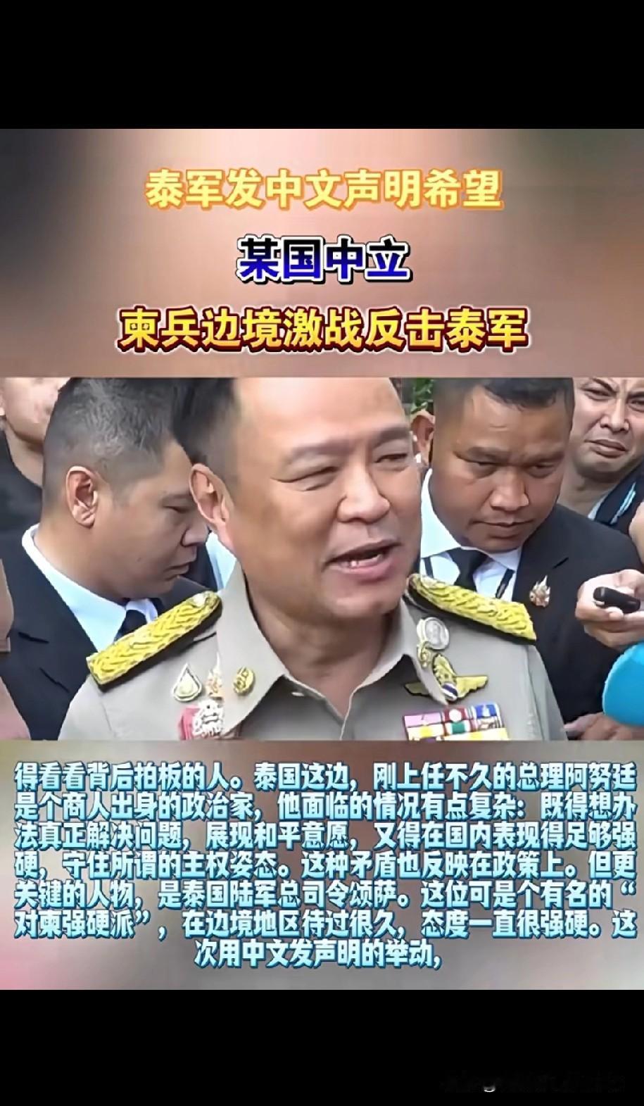 快讯!!!! 泰军直接用中文发声明! 明着暗着点“某国”别插手! 连本国文官政