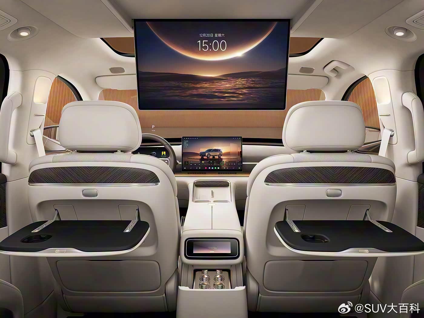 零跑D19 开启盲订之后,内饰官图也正式官宣了设计依旧公式化,环抱座舱、电控出风口、独立双屏、四辐方向盘、60吋AR-HUD,无线充只安排一侧,双杯架内置弹性限位,后方则是对开扶手箱,不出意外会是双开门冰箱细节上,B、C柱有散射氛围灯和航空阅读灯,二排吸顶屏尺寸也不小;门板也不搞把手,而是自然下垂的真扶手,二排也有手动遮阳帘;小桌板一边一个,还带有杯架坑,冰箱上方还有小触屏至于座椅,主驾有头枕音响,其他没有;二排有独立腿托,右侧还带零重力;二三排纯平地板无台阶,坐姿、挑高都有保证不玩花活、点到为止,成本自然能减下来,卖到25万起售也就不奇怪了甚至我觉得,这车可能22.98万起,完全有可能SUV大百科 大v聊车