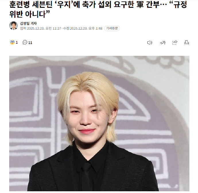 官方回应上级让李知勋找人唱祝歌 近日,韩国陆军训练所一名干部曾向以训练兵身份服役的知名偶像组合成员李知勋为其婚礼邀请祝歌歌手,引发争议。23日,陆军训练所方面表示“不违反规定”。