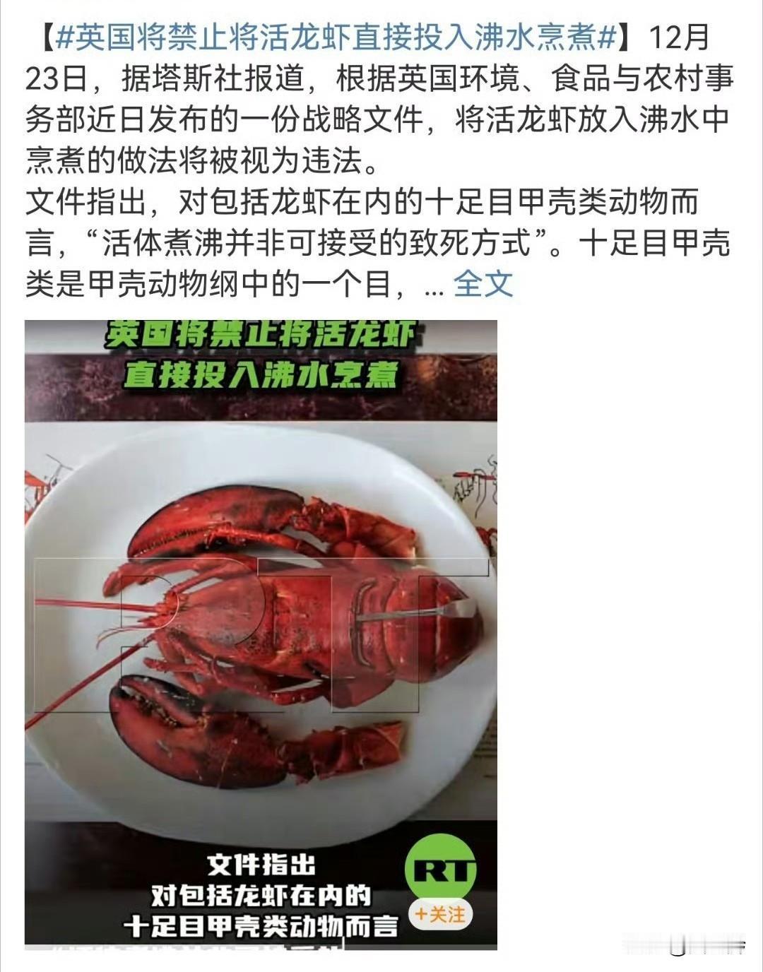 笑死我了!俄乌局势,英国拱火,现在来个什么禁止将龙虾放入沸水煮! 哎呀,这是不是显得挺BT呀,要知道,俄乌局势,英国从头到尾的跳,不劝和反拱火,那可是不输其他欧美国呀!几千上万人命他们干着起劲! 现在吃了一个龙虾还关心他处理方式不接受,这是不是太虚伪了!