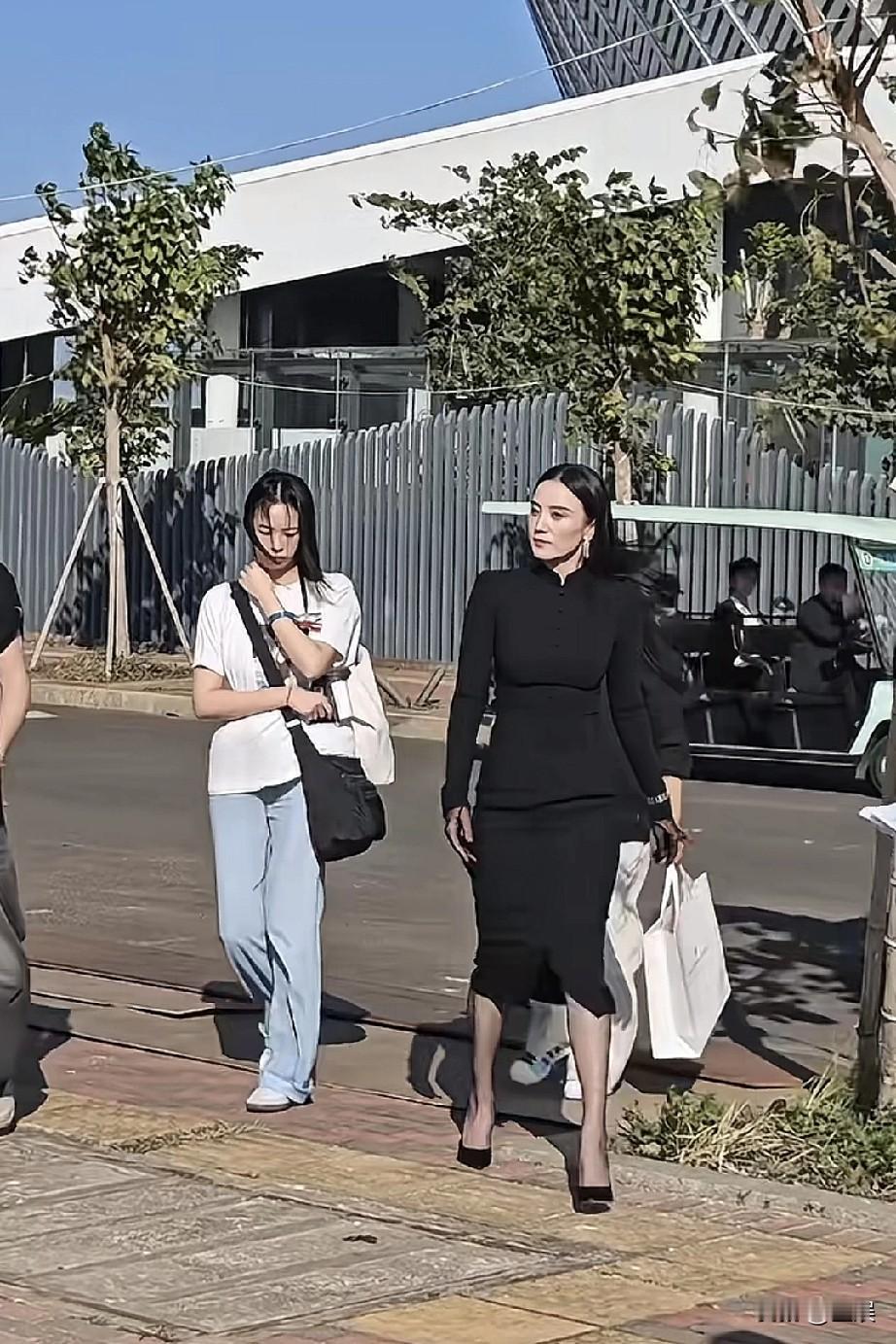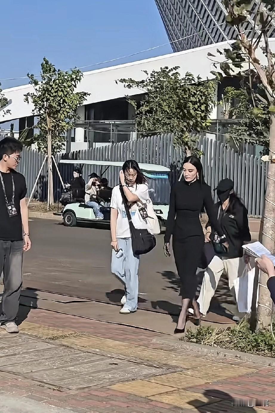 在星光大赏的场外,宋佳一身黑色修身裙装搭配高跟鞋