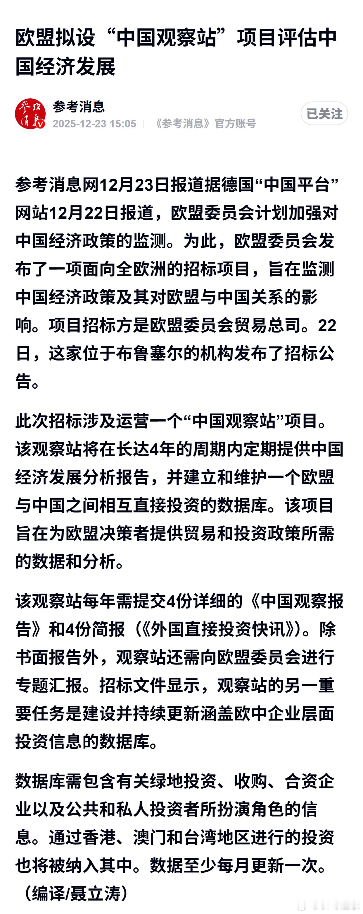 欧盟拟设“中国观察站”项目评估中国经济发展