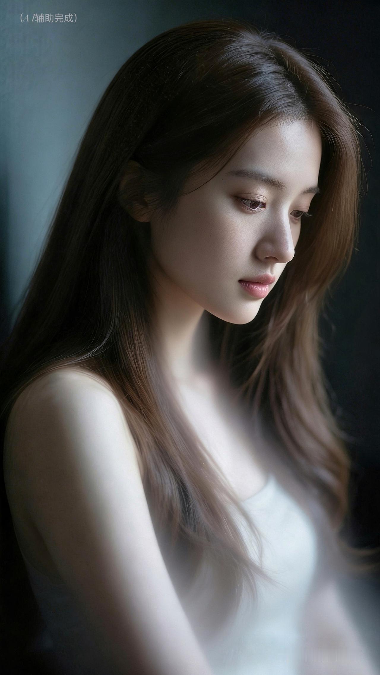 乌发如瀑轻垂,柔光吻过肩颈,侧颜似艺术雕琢。素色吊带衬得肌肤似雪,眸光低敛时,静谧里漫出温柔诗意,每处细节都流淌着优雅,是时光淬炼的绝美韵致。