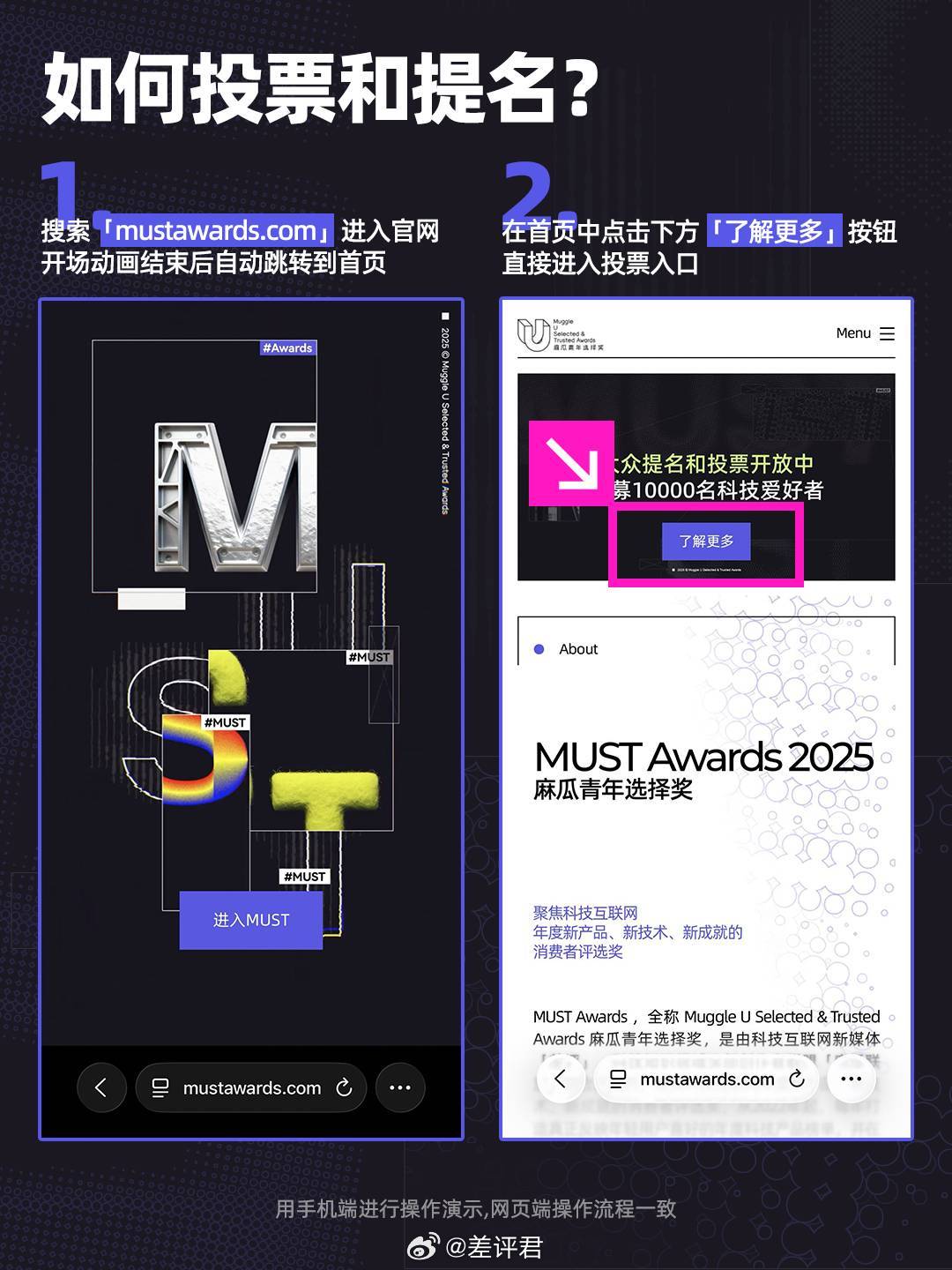 🎉差友们!第四届「MUST Awards 麻瓜青年选择奖」大众投票倒计时3天!👀这是我们发起的一个行业活动,号召大伙儿投票选出年度科技好产品,参与方式看图片,截止时间是12月26日。🎁官网后台会随机抽取差友送福利,大家可以分享给朋友一起参加:💗「10000元」感谢金,官网后台随机抽取10位参与者平分💗「拓竹」入门级桌面3D打印机A1,送给官网后台第925位参与者💗「罗技」ERGO人体工学键鼠套装,官网后台随机抽取2位参与者送出💗「扣子」限量版捏捏,官网后台随机抽取10位参与者送出