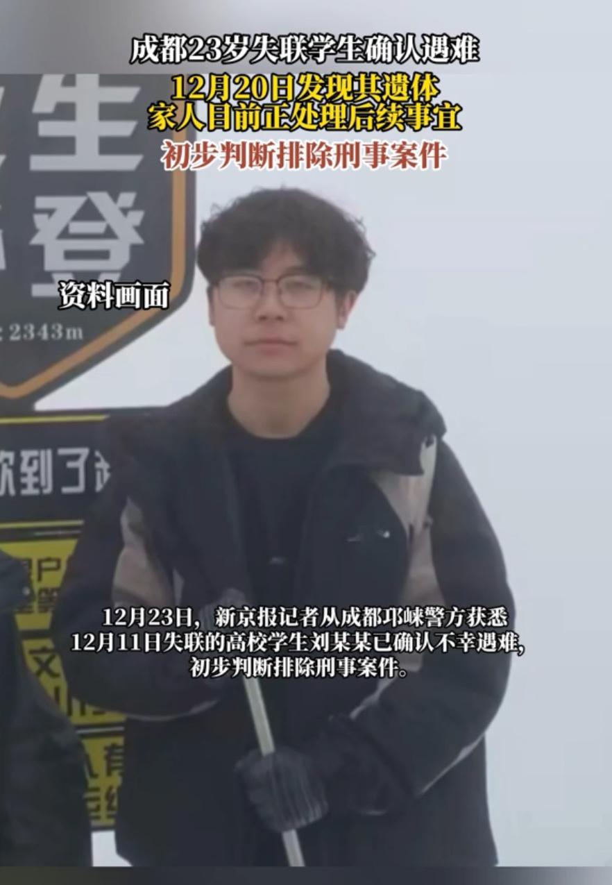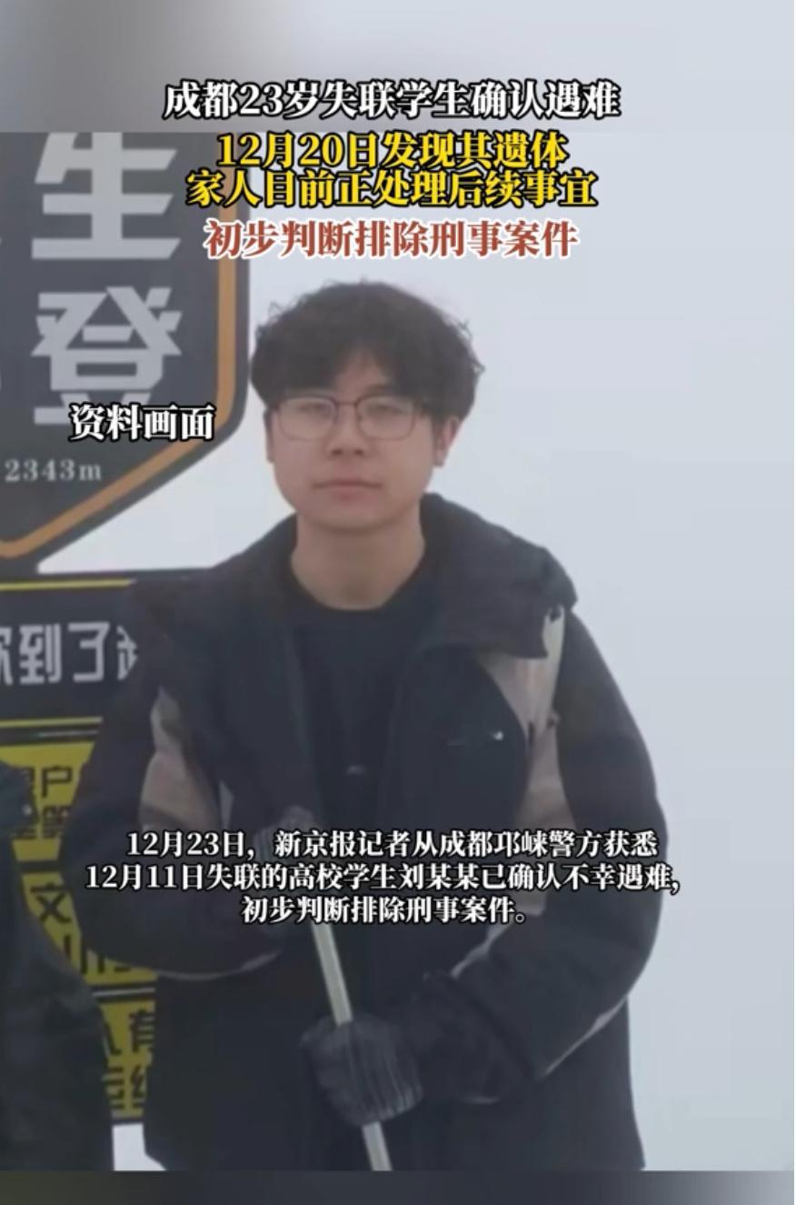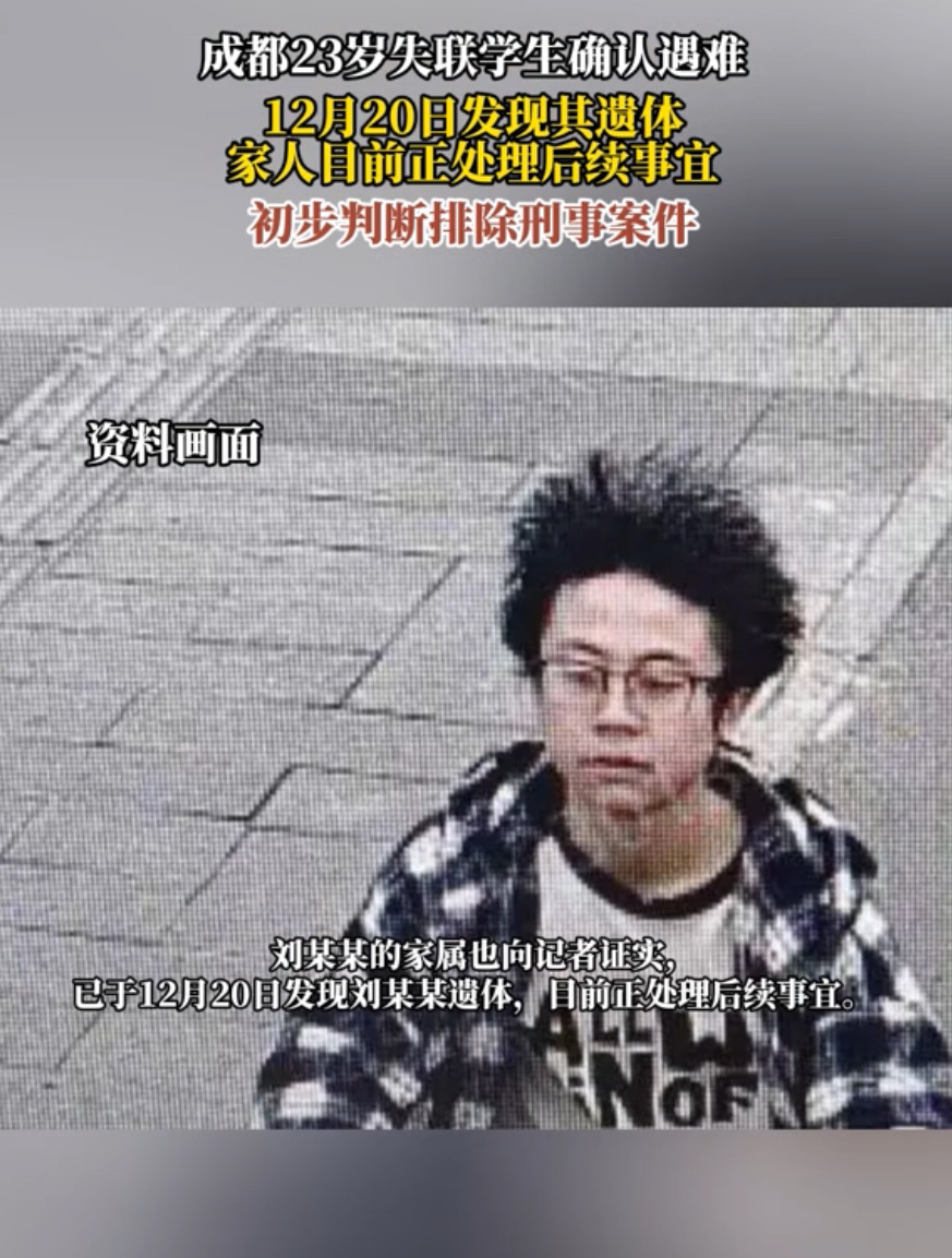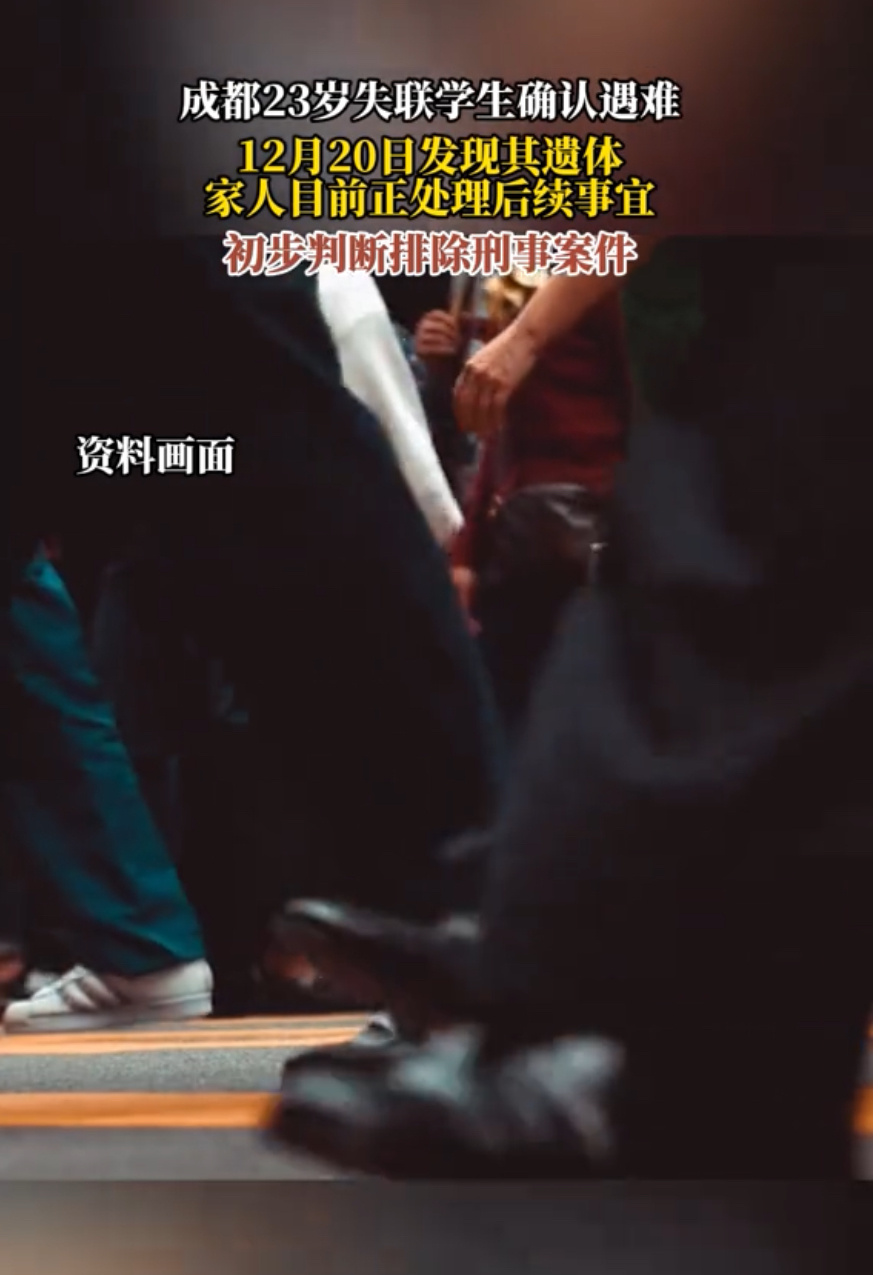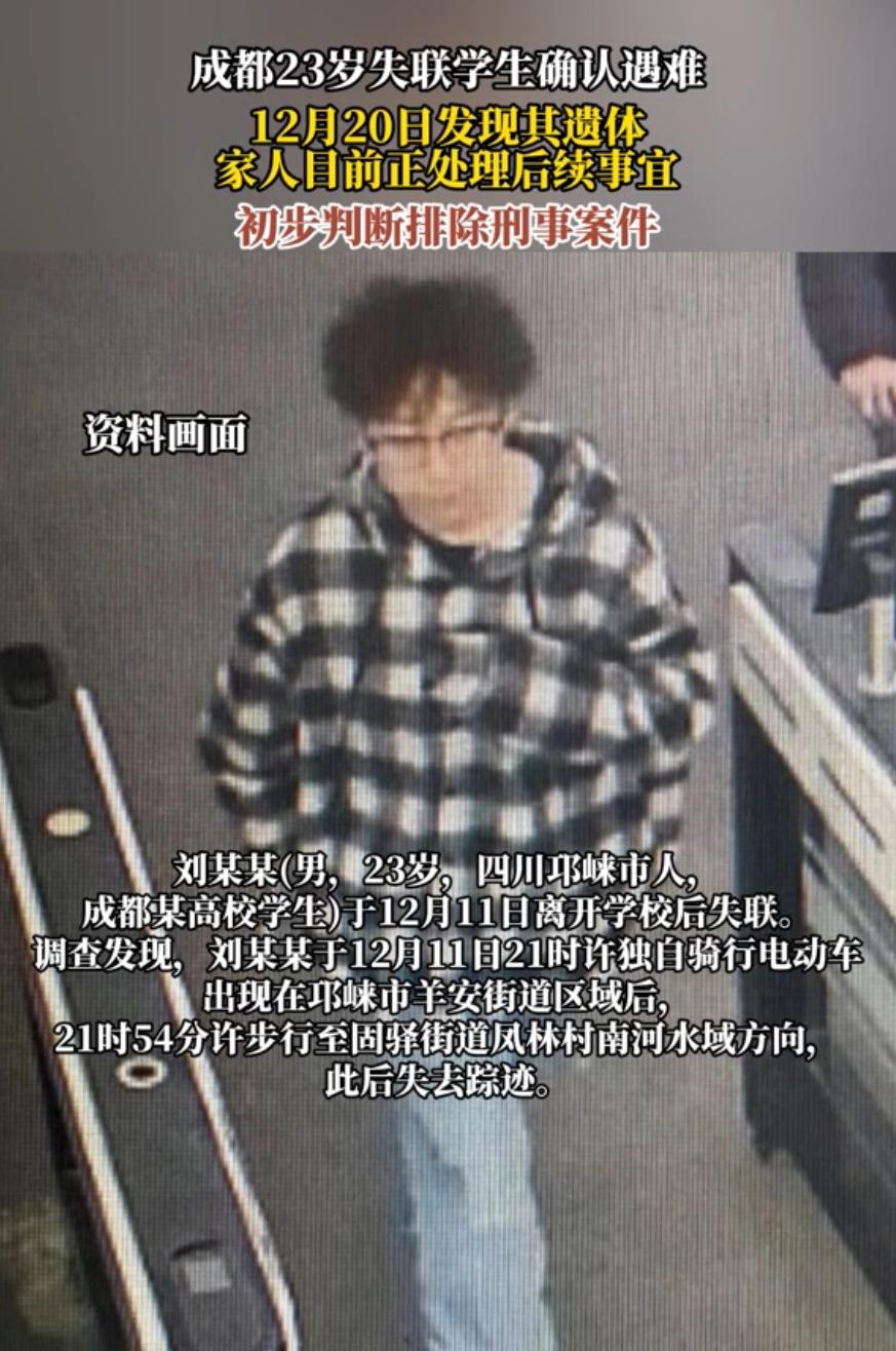 成都23岁男生失联9天后遗体被发现监控定格的最后身影,成了23岁成都高校男生刘某某留给世界的遗憾。他于12月11日深夜走向南河水域后失联,9天后遗体被打捞上岸,警方初步排除刑事案件,认定为溺水身亡。这场悲剧再度引发全网对安全防护的聚焦:未开发水域的监控盲区、高校缺勤预警与心理干预的漏洞,以及青年夜间独行的风险,都被推至公众视野。微评时论 成都23岁男生失联9天后遗体被发现