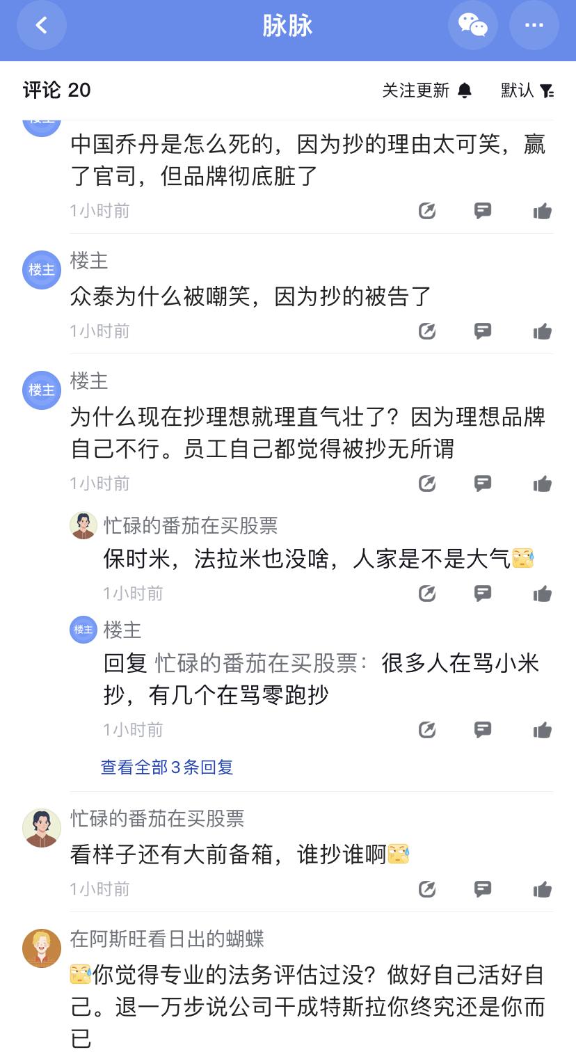 疑似理想员工在同事圈发飙,称对比保时捷,很多人会觉得理想被抄活该,这就很操蛋。并表示打不赢官司也无所谓,理想车主需要有“我是原创”的自豪感。 不过也有理智的人回复,“你觉得专业的法务评估过没?”所以,为啥理想不起诉“抄袭”的车企?