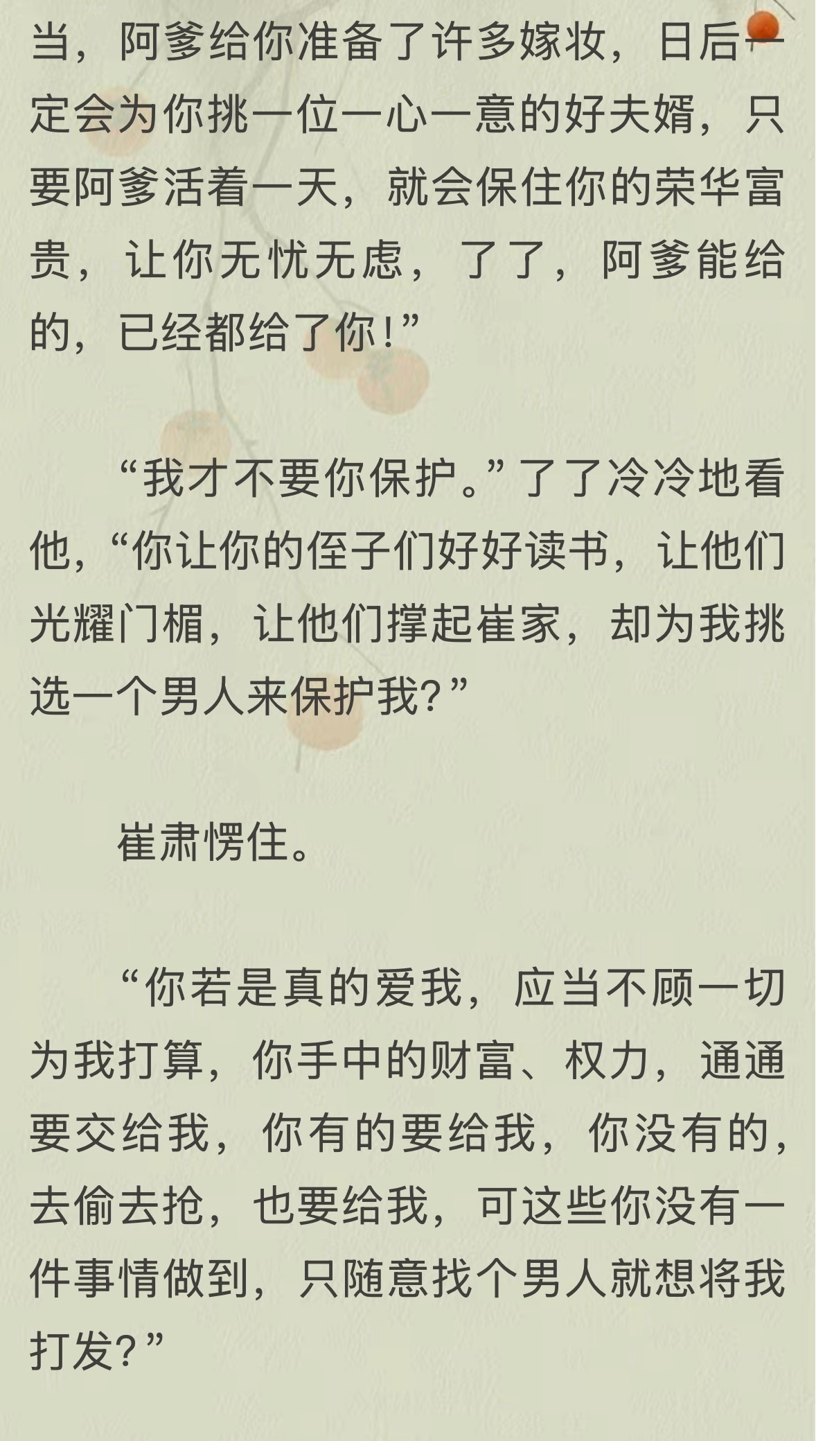 就是就是,如果真的爱女儿,就把自己手中的财富、权力都交给她,而不是给她找个男人还美名其曰“保护。