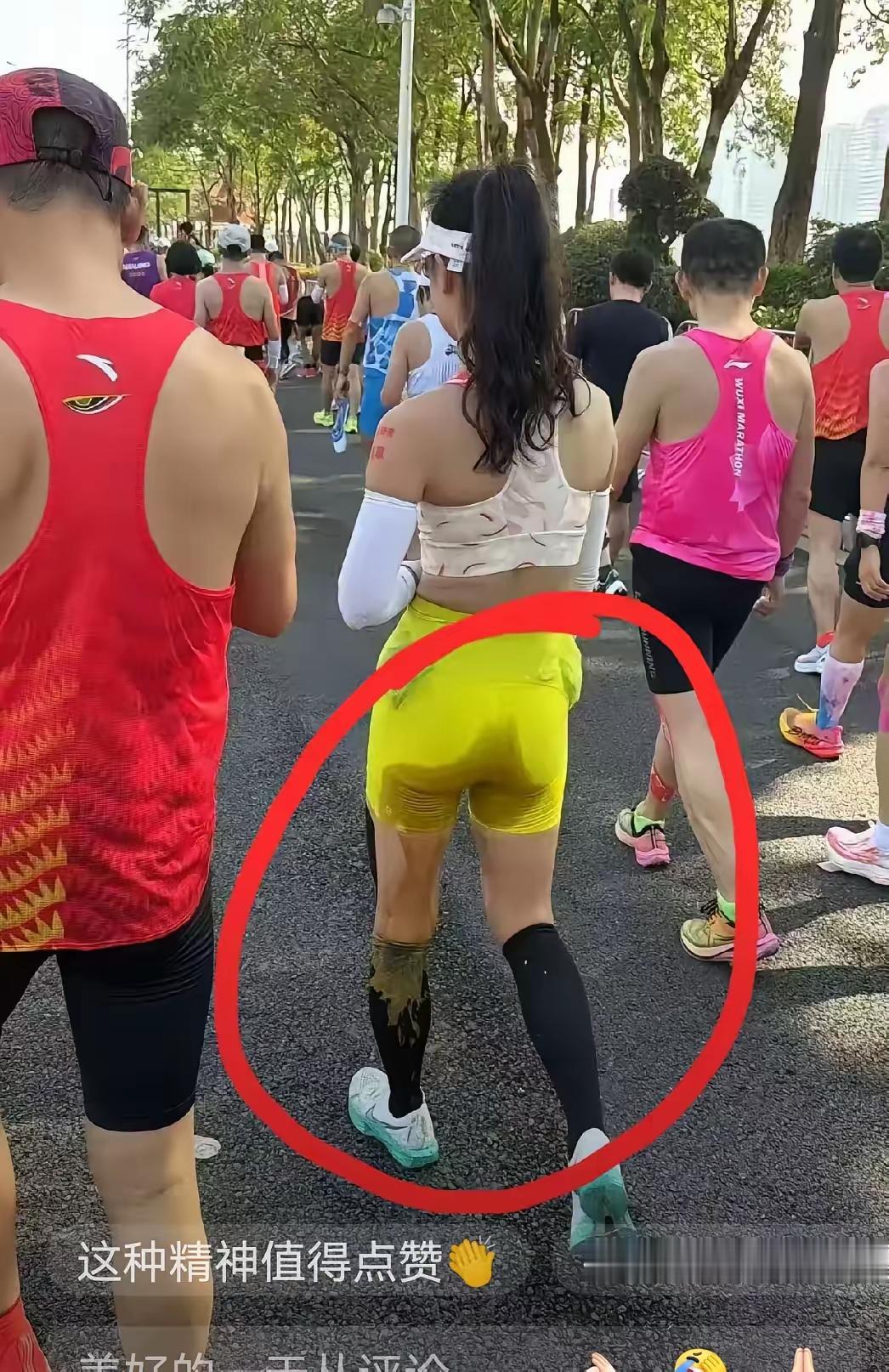 这个小姐姐太敬业了,跑马拉松马到了拉稀,还坚持继续跑,小美女应该是急性肠胃炎,跑的中途出现问题,尽管顺着屁股一直流下来也没有阻止她脚步,就是在她的前后跑手需要忍一忍臭味,但是这个小姐姐的精神可嘉,更应该注意身体啊。
