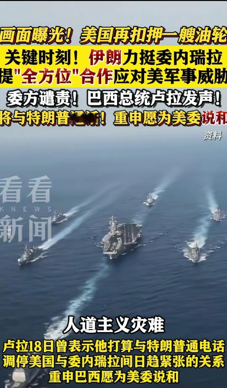 美国在拉美 又开始搞小动作了! 不到一天时间,就一口气扣下了3艘油轮,这次算是踢到铁板上了。最新消息显示,美军的舰艇在委内瑞拉附近海域试图强行登船检查时,“贝拉1号”油轮的船员直接开足马力反抗,双方在海上追了好一阵子。 这艘挂着巴拿马国旗的油轮,美方说它和伊朗有关系,但船员们显然不买账。跟前几天乖乖配合检查的“世纪号”一对比,这次美军算是撞上硬钉子了。有意思的是,“世纪号”当时载的是熊猫企业买的原油,现在美方正为当初强行登船找借口发愁呢。 专家分析,美国这种随便就扣押油轮的行为,已经把国际贸易的规矩搅得乱七八糟。更让人担心的是,随着越来越多油轮反抗,未来很可能会搞出更激烈的海上摩擦。目前“贝拉1号”已经被扣押,但这事儿,估计才只是个开头呢。