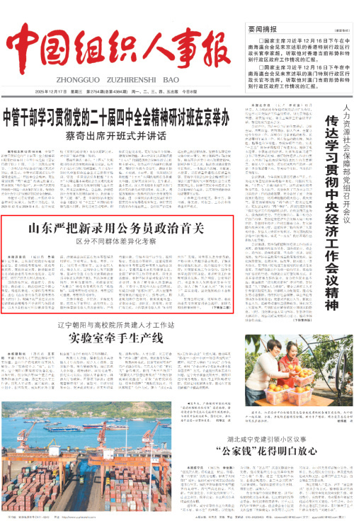 #山东严查新录用公务员网络社交平台言论#【《中国组织人事报》头版:山东严把新录