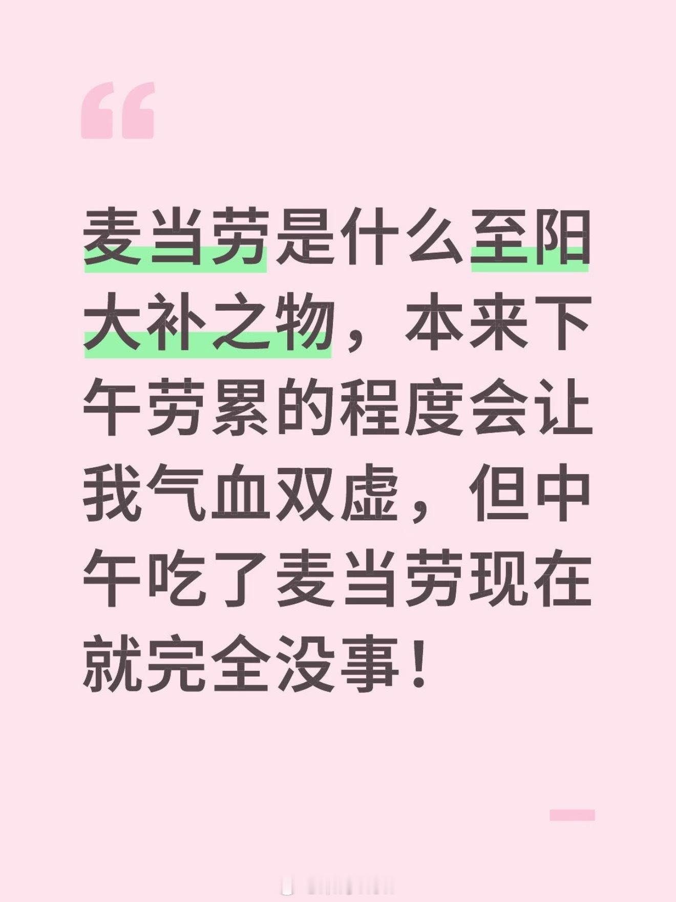 我发现了补阳气最快的方式,最快的办法是吃一顿麦当劳麦当劳性热,肯德基性温,赛百味性寒~