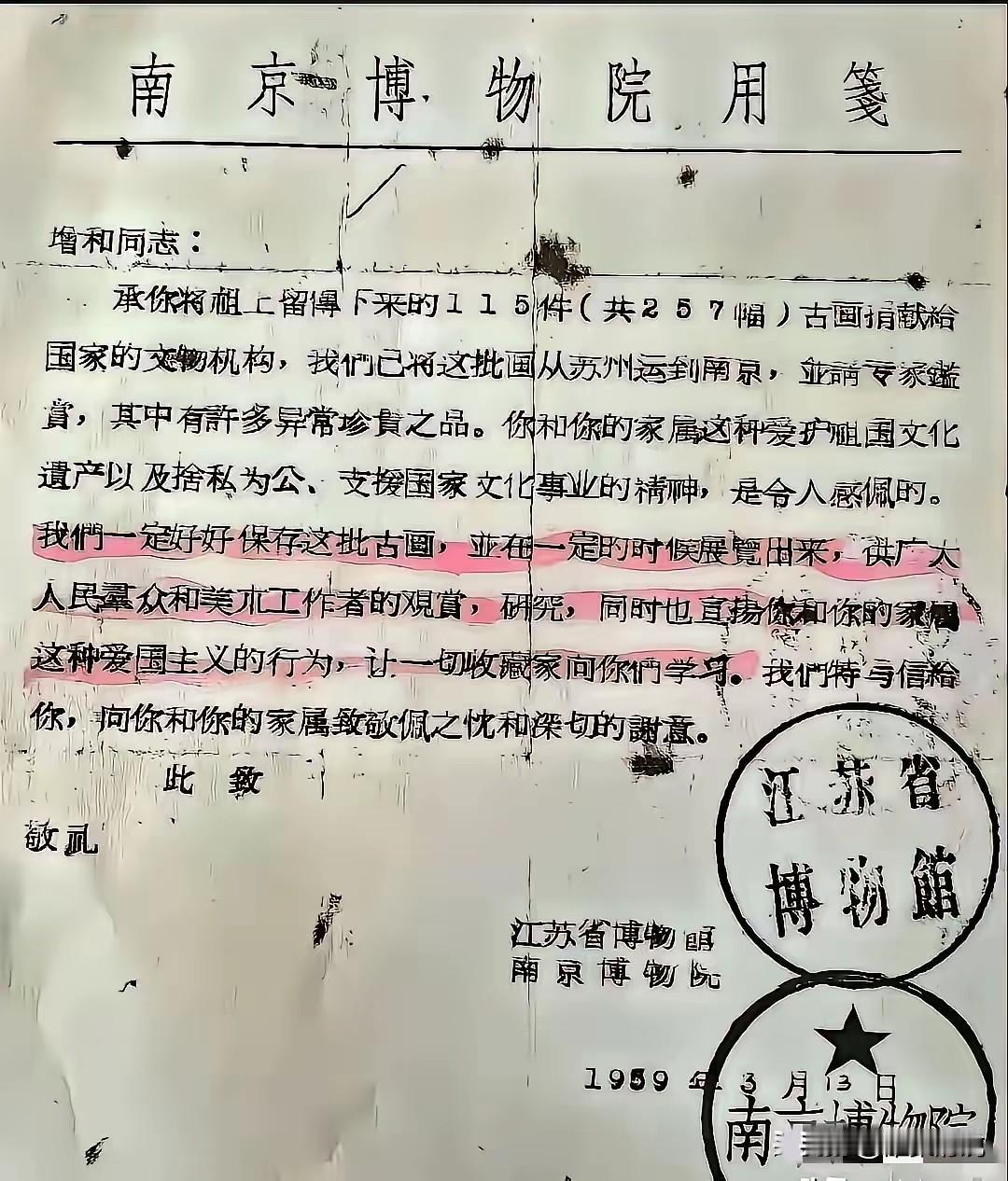 吃相太难看,让捐献的时候一句“舍私为公”,私下做的却是“舍公为私”的活 庞家有拿出了一份证据,这份证据是一张用南博标签纸写的收条,收条中详细记载了庞家所捐赠的书画数量,以及表扬了庞家“舍私为公”的精神,并且承诺“我们一定好好保存这批古画”。 然而,庞家所捐赠的古画却几经流转成了拍卖会上的拍品。