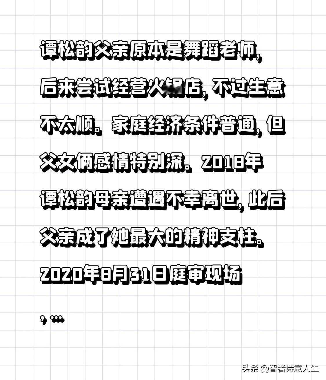 谭松韵父亲原本是舞蹈老师,后来尝试经营火锅店,不过生意不太顺。家庭经济条件普通,但父女俩感情特别深。 2018年谭松韵母亲遭遇不幸离世,此后父亲成了她最大的精神支柱。2020年8月31日庭审现场,他和女儿庭外相拥打气,那时他身形消瘦,让人心疼。某次国剧盛典上,父女俩一起登台发表感言,场面超温馨。谭松韵曾说父母的支持是她坚持梦想的重要原因,如今她重新投入演艺事业,父亲低调陪伴,两人互相扶持着走过艰难时光。 谭松韵剧集口碑 谭松韵演技 明星 🌹🌹🌹🌹🌹🌹🌹🌹🌹