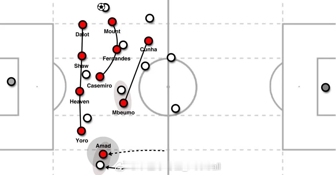 Tactics Journal:曼联实际上已经在踢4-3-3了。(原文发布于2025年12月16日)当曼联控球时,他们从对角线来看,呈现为4-3-3的站位。你不会说阿马德·迪亚洛是右边翼卫,你会更倾向于说他是右边锋。这又是一支挑战我们对传统阵型理解的球队。图一是曼联控球时的对角线站位。从对角线观察,布鲁诺·费尔南德斯更像一名游走在中路的全能中场,比起防守型中场反而更接近10号角色。芒特从左路插上,与布鲁诺搭成一个临时的不对称中场三人组,二人都提供进攻推进,而卡塞米罗在其身后做保护。更靠前的位置上,库尼亚与姆伯莫可以互换位置,也都可以回撤拿球;既能做脚下球的传球选择目标,也能向对方后防线身后跑位要身后球。另一侧,阿马德担任进攻转换的主要输出,是转移球路时的目标点。这种短传配合与对角线插走的理念对于鲁本·阿莫林来说并不新鲜,他在执教葡萄牙体育时就多次谈到过斜线配合的概念。不过当阿莫林说英语的时候,他的意思有时会在切换语言时出现一些偏差。当在被拿来与水晶宫,一支并不沿对角线组织进攻但也同样打五后卫的球队比较时,阿莫林带着苦笑说:“我们踢法不一样,你也可以从数据上来理解,但现在很难把一切解释清楚。不过,你不会说所有4-3-3的球队都一样,对吧?我们以不同的方式踢球,在不同的空间防守,尝试以不同的时机进攻。”而球员们自己也开始逐渐掌握这些共通的比赛原则。4-4战平伯恩茅斯一役后,阿马德解释说他们的阵型结构“取决于对手,有时是4-4-2,有时是3-4-3,有时是-3-3。外人也许看不到,但我们会根据鲁本的要求改变。阵型对我们来说并不重要。”在足球场上,斜线/对角性是一种难以描述的东西。如果你不刻意去寻找,你就不会发现。它提供了一种不同的观赛视角,但一旦你看见了,就无法忽视。而且,其他很多球队也已证明其有效性。如何逼抢一支后防着重在一侧、而前锋排布在另一侧的球队?就连伯恩茅斯主帅安多尼·伊劳拉,带出了联赛最擅长高位逼抢的队伍之一的教练,也承认逼抢阿莫林体系下的球队并不容易:“我认为他们还是那套阵型,但会根据防守队员而调整。这是一个非常灵活的体系,取决于边路球员:如果你用边后卫去防守他们,他们会收得更深;如果你用边锋去防守,他们会压得更高。中路的位置也会这样,即便是我们用泰勒·亚当斯去盯布鲁诺,我们尝试去2对2防守,但实际上那并非真正的2对2。直到把防守的对位调整好之前,我们在前15–20分钟都吃了苦头……”当球员沿同一条对角线排布并通过漏球、假动作和快速的二过一推进时,就很难防地面传球。一次球路的转移,防守方就可能被打穿,完全暴露在对方面前。要真正理解他们在做什么,你必须给这些球员分配角色,而非简单地按位置去看他们,这样你才能明白他们实际想要达成的目标,而不是我们用僵化的纵向阵型去期望他们组成的样子。图二是曼联对伯恩茅斯的防守站位:阿马德·迪亚洛回追盯防伯恩茅斯左后卫特吕菲尔。当萨卡回追防守时,我们不会称他为边翼卫,而称其为边锋,而在曼联这里也是同理。阿马德回追盯防对方左后卫,并在后点有空当时补位保护右后卫。但他并不擅长盯人或跟防,他的直线冲刺速度不如姆伯莫,他的对抗还可以,但并不会是那种你想把放进防线里的人选。图三是曼联对阵布莱顿:姆伯莫在转换中回追扫荡,而阿马德则留在更靠前的位置上。曼联本赛季最出色的防守表现是在对布莱顿一役,当时阿马德留在更靠前的位置,盯防对方左后卫德克伊珀,姆伯莫则回追去盯防速度型的边锋明特,负责在球队丢球后保护防线身后空间。他凭借速度更擅长在转换中做扫荡,也更善于跟防回追。曼联形成一个从左到右以对角线站位,因此当他们丢球时,右路在转换中更易暴露。要么由姆伯莫回追扫荡,要么由阿马德回追扫荡。相对更强侧的左路负责压迫与掩护,而弱侧则负责扫荡,直到他们重新获得球权。图四是曼联对埃弗顿:姆伯莫回防,协助马兹拉维夹防格里利什。他们在对埃弗顿一役没有让姆贝乌莫如此回追,原因是人员调整。曼联始终一侧以进攻为主,另一侧以防守为主。当时,马兹拉维作为右后卫偏防守,而多尔古作为左后卫偏进攻。从那以后,他们放弃了让姆贝乌莫回追的战术,防守表现也因此起伏不定。曼联的执行总是到位吗?并非如此,但曼联的进攻端开始变得更稳定。他们的防线质量够吗?不够,中卫位置上的质量仍不足。至于他们是否是英超最具观赏性的进攻队伍?对我而言,毫无疑问,是的。这篇文章回应了TA关于曼联在幕后练习“新阵型”4-3-3 的报道。之所以练习,是因为他们事实上已经在以4-3-3的方式比赛——你只需从对角线角度看场上站位就能看出来。所有阵型的其实只是数字而已。但本文的一切要附带一个重大免责声明:姆伯莫与阿马德将因参加非洲杯缺阵数周。我的猜测是,他们会用多尔古作为左路进攻的输出点,可能会改用从右向左的对角线组织来弥补。同时会大量依赖将球高吊到舍什科或者齐尔克泽头上。问题是球队从未在没有姆伯莫的情况下尝试过这种打法。我非常好奇他们会怎么安排,以及到时的场面会有多乱。曼联 英超联赛 专栏 · Tactics Journal