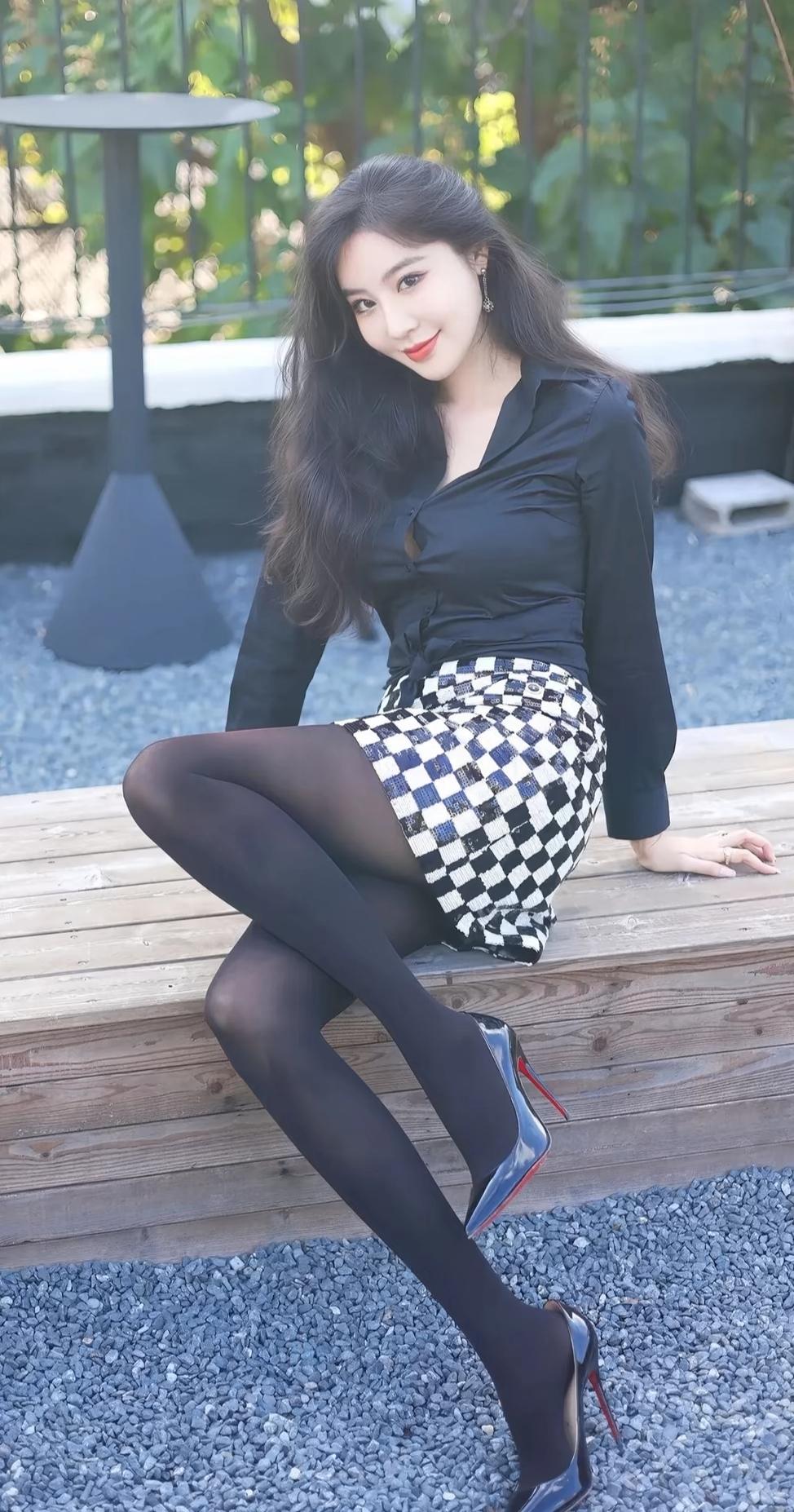 都市女郎穿搭指南:黑衬衫+格子裙+红高跟鞋,时尚又优雅!