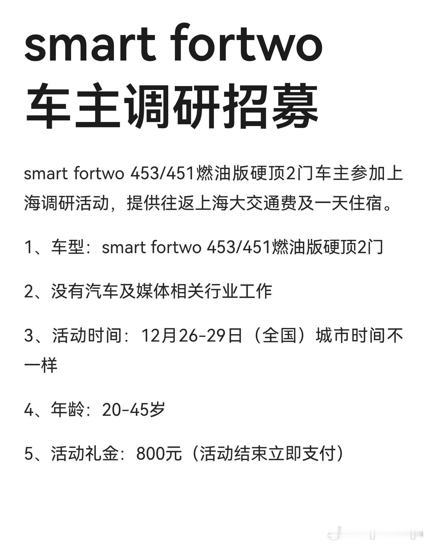 Smart Fortwo新款开始用户调研了?坐等受邀去看的网友来聊聊