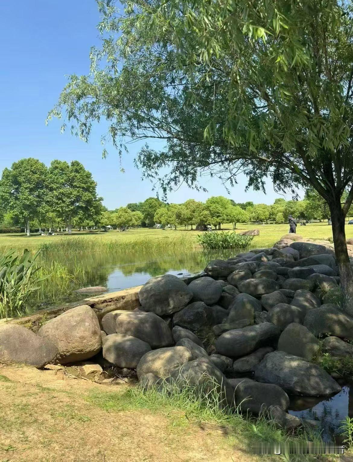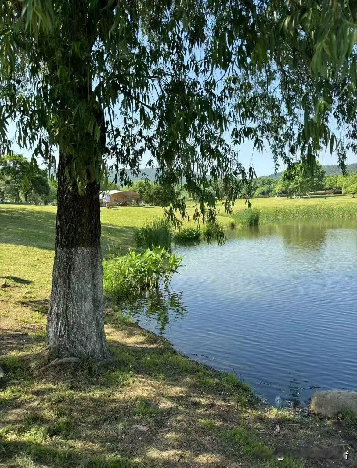 柳梢耷拉着跟帘子似的,湖面亮得晃眼。 草地跟块绿毯子似的铺那儿,石头缝里都透着凉。 往树荫下一瘫,连时间都跟着水纹慢悠悠晃。 刚好瞅见小孩追着风疯跑,把草叶上的光都惊得跳起来, 远处飘过来点烤肠香,得,这湖啊树啊的,全裹上了股过日子的甜味儿。