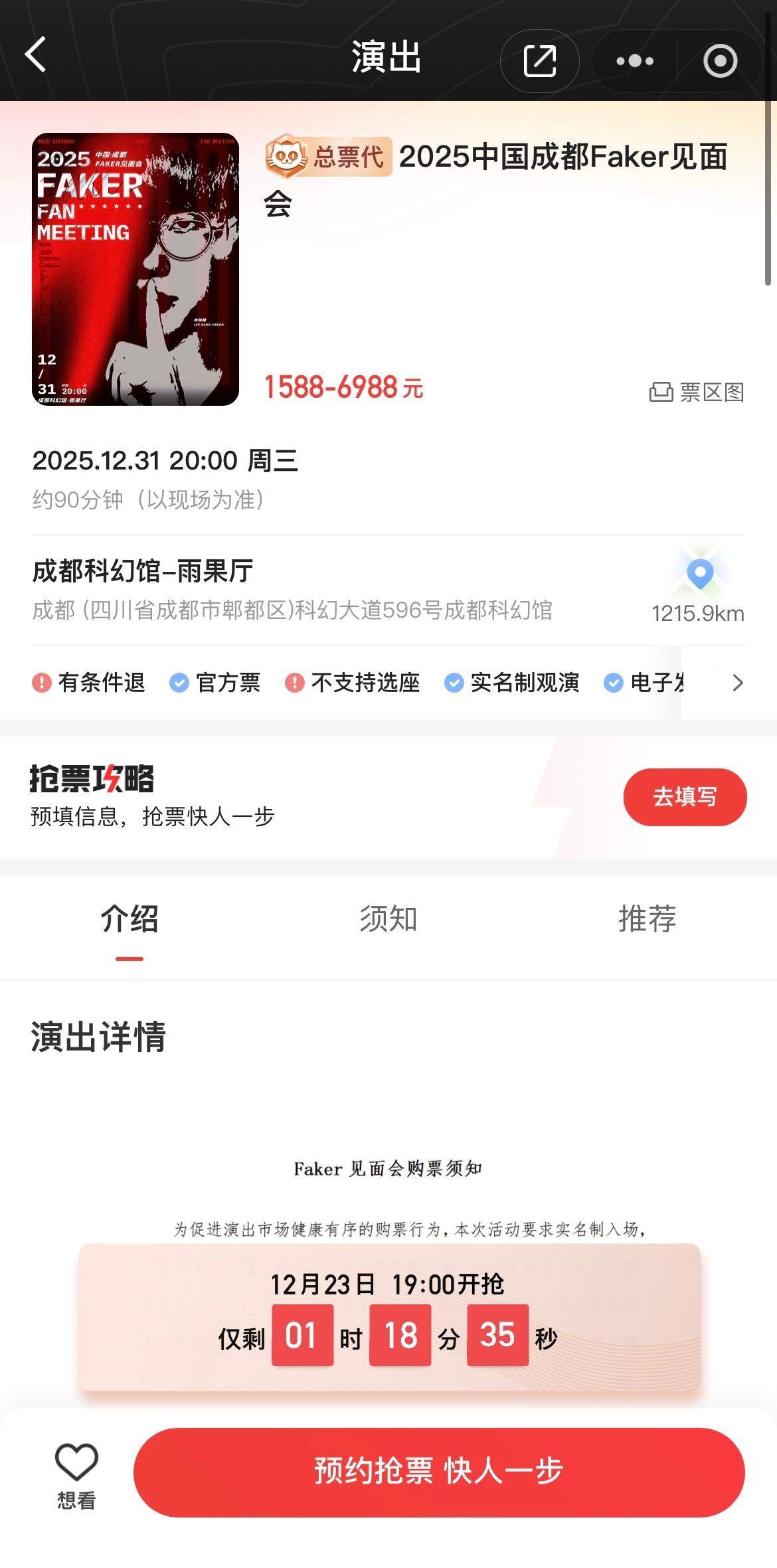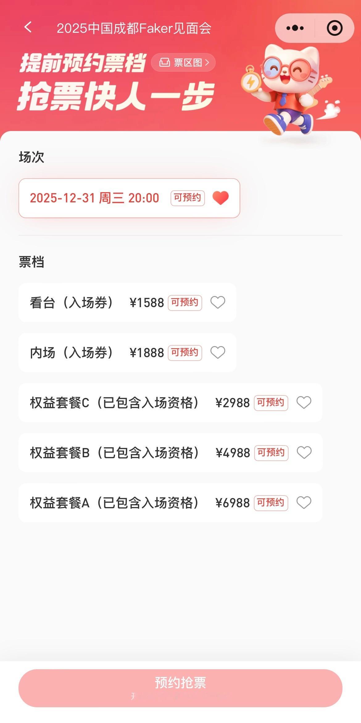 真全年无休啊!Faker官宣成都见面会今晚七点开始抢票 ,看了下价格1588-6988,虽然是跨年那天但感觉还是小贵成都今年举办了S赛,没多久faker又来成都,成都对电竞的支持力度算是相当大Faker成都见面会bin说xun很适合blg竞技游戏