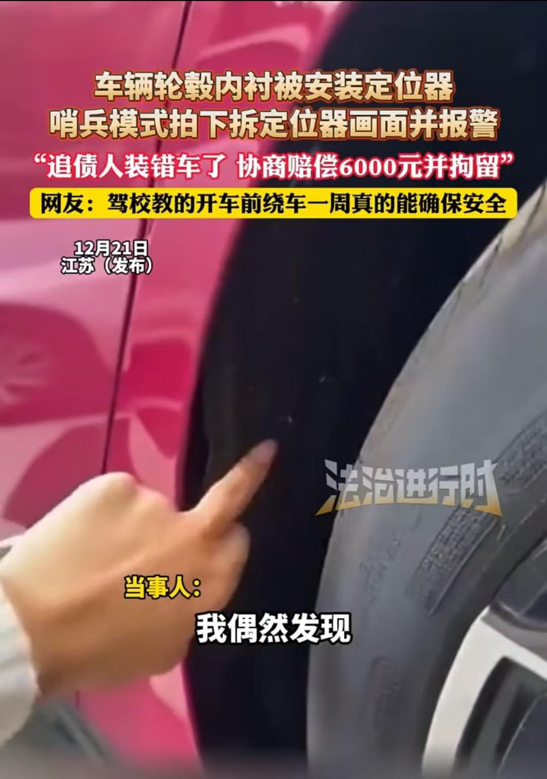 近日,江苏,女子的车被他人安装了定位器,幸好她每次上车都会检查一圈,发现后,她就开启了哨兵模式。当天晚上,她就看到一名男子趁着天黑来到她的车子旁,想要取走定位器。女子随即报警,民警赶来将该男子抓捕。最后双方协商,对方赔偿女子6000元的损失,这件事才得以解决。 现在不少车主都养成了个好习惯,那就是上车之前得先绕着车转悠一圈,检查检查,江苏常州这位王女士(化名)就是这么个细心人,没想到啊,就因为这平日里爱惜车子的小习惯,竟然帮她揪出了一个藏在爱车上的大“隐患”。 王女士今年刚提了辆新车,那心里是稀罕得不行,平时可爱惜了,每次开车出门前,她都习惯性地绕车走一圈,看看车身上有没有被剐蹭的地方,轮胎气足不足,轮毂有没有啥不对劲的。 前段时间的一天早上,她照常围着车转圈检查,走到后轮那的时候,突然发现轮毂内侧莫名其妙地凸出来一块东西,贴得那叫一个严实,她凑近了瞅了半天也没认出来是啥,心里琢磨着大概是轮毂用久了出现的故障部件吧。 想着自己对修车这行也不懂,就没敢乱动,打算等第二天抽个空把车送去保养店,让专业的师傅给好好瞧瞧。 第二天一大早,王女士就把车开到了她常去的那家保养店,还特意跟工作人员叮嘱了一句,让人家帮忙重点看看右后轮轮毂上那个凸起是咋回事,怀疑是不是轮毂坏了。 工作人员仔细检查了一番之后,脸色立马变得严肃起来,跟王女士说:“大姐,这哪是什么车辆自带的零件啊,这是个带强磁的定位跟踪器!明显是被人特意粘上去的,后面还连着电源线呢。” 一听这话,王女士瞬间就慌了神,心里那是又气又怕,自己平时老老实实过日子,也没跟谁结过怨啊,怎么就被人偷偷装了这玩意? 她第一反应就是想报警,但转念一想,现在只知道车上有个定位器,根本不知道是谁装的,就算报了警,警察一时半会儿也难锁定嫌疑人。 就在这时候,她突然灵机一动,想起自己这新车有个“哨兵模式”,只要开启了这个功能,车辆熄火锁车以后就会持续监控周边的情况,一旦有啥异常动静,车子会自动录像并且给手机发警报 ,她当机立断,决定来个守株待兔。 王女士让工作人员先把定位器按原样留着别动,然后悄悄开启了哨兵模式就离开了保养店,回到家以后,她是时刻关注着手机上车辆APP的动态,心里盘算着,那个装定位器的人肯定还会回来取,到时候就能把他抓个现行。 果然不出所料,到了当天晚上八点多,天彻底黑透了,王女士的手机突然“叮”的一声,收到了哨兵模式发来的报警提醒,APP上紧接着就推送了实时的录像画面。 她赶紧点开一看,只见一个戴着口罩和帽子、捂得严严实实的陌生男人,正鬼鬼祟祟地走到她的车旁边,然后直接蹲在右后轮那个位置摸索起来,显然就是冲着那个定位器来的。 王女士那是又激动又紧张,立马拨通了报警电话,把车辆停放的具体地址、那个男人现在的举动全都一五一十地说得清清楚楚。 面对警察的询问,那男的一开始还想抵赖,说自己就是路过不小心碰到了车,但这谎话哪能骗得过警察叔叔啊,当民警把哨兵模式拍下来的完整录像往他面前一放,再加上他手里还攥着那个刚拆下来的定位器,这男的终于没底气了,低着头承认了事实。 原来这男的在外面跟人有资产纠纷,想通过装定位器来跟踪对方,结果阴差阳错地认错了车,把定位器给粘到了王女士的车上,搞了个大乌龙。 后来在民警的调解下,双方坐下来协商解决这事,那男的也知道自己干的事违法了,还给王女士的生活造成了这么大困扰,主动提出要赔偿。 最后双方达成一致,那男的赔偿王女士6000块钱,这钱里头包括了精神损失费、这段时间的交通费,还有车辆检查、清理定位器残留胶水的费用,王女士也是个爽快人,拿了赔偿也就表示不再追究他其他的责任了。 这事儿被王女士发到网上以后,网友们纷纷给她点赞,夸她冷静又机智:“上车前检查这个习惯真是太重要了,好多人都给忽略了,以后我也得注意。”“这哨兵模式真不是噱头啊,关键时刻能当铁证用,太给力了。”“还好这回是装错了车,要是真被坏人盯上了,那后果简直不堪设想啊。” 平时没事儿的时候可以定期检查检查车辆那些隐蔽的部位,比如底盘啊、轮毂啊、保险杠内侧啊、还有那个OBD接口啥的,这些都是容易被人偷偷装定位器的地方。 要是真发现了疑似定位器的设备,千万别自己擅自拆除,免得破坏了证据,应该赶紧报警让警察来处理。 有条件的车主可以好好利用车辆的哨兵模式、监控录像这些功能,给咱们自身的安全多加一层保障。 王女士这遭遇也给咱们大伙儿提了个醒:隐私安全可无小事啊,哪怕是日常用个车,也不能掉以轻心。 养成良好的检查习惯,学会用法律和科技手段来保护自己,这样才能避免被不法分子钻了空子。 大家平时上车之前有没有检查车辆的习惯呢? 对此你怎么看? 信源:大象新闻