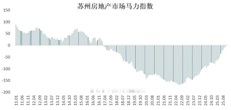 苏州楼市,迎来一丝曙光!衡量市场潜在驱动力的马力指标,终于翻红了。从2017年3月至2025年10月,长达八年多,苏州房地产市场马力指数一直处于负值区间,也即楼市上行动能较弱、下行动能较强。马力指数值正值越大,驱动楼市上行的能量越大。马力指数值负值越大,驱动楼市下行的能量越大。如今,从市场潜在驱动方向的转变来看,苏州楼市开始真正朝着止跌方向努力了!