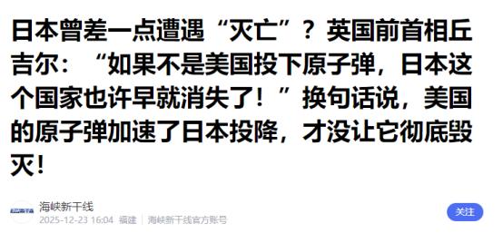 英国前首相丘吉尔曾一针见血地指出:如果不是美国投下原子弹,日本这个国家也许早就消失了! 这句话乍一听可能让人觉得不可思议,毕竟原子弹给广岛和长崎带来了毁灭性的灾难,无数平民伤亡,城市沦为废墟。但只要梳理一下1945年二战末期的真实历史脉络就会发现,丘吉尔的判断半点不假。 美国的原子弹看似是给日本带来了重创,实则是在关键时刻踩下了战争的“急刹车”,加速了日本的投降,才让这个已经走到毁灭边缘的国家,保住了最后的存续希望。 要搞懂这个逻辑,首先得看清1945年夏天日本的真实处境——那时候的日本,早就不是什么“大东亚共荣圈”的霸主,而是一艘千疮百孔、随时可能沉没的破船。 德国在5月8日已经正式投降,轴心国阵营彻底瓦解,日本成了孤家寡人。在太平洋战场上,日军的海空军几乎被打光,几百艘军舰要么被击沉要么被重创,舰载机和飞行员损耗殆尽,原本占据的岛屿接连失守,美军已经逼近日本本土周边。 美国早就对日本实施了严密的海上封锁,代号“饥饿作战”的水雷封锁切断了日本的所有海上补给线,国内的粮食、石油、钢铁等战略物资彻底告急。 当时日本国内的情况已经惨到了极点。由于长期战争消耗,经济早就濒临崩溃,粮食实行严格配给制,普通民众每天的口粮定量少得可怜,不少人只能靠挖野菜、吃草根度日,饥饿和疾病在民间蔓延。 美军从1944年底就开始对日本本土进行大规模轰炸,一开始炸军事工厂,后来直接用燃烧弹轰炸城市,东京、大阪、名古屋等大城市大半都被烧成了焦土,累计造成55万多平民伤亡,240多万栋房屋被毁,无数人流离失所。 可即便到了这步田地,日本军部的强硬派还是死不认输,甚至制定了所谓的“本土决战”计划,要跟盟军拼个鱼死网破。这个“本土决战”计划,才是真的要把日本推向彻底毁灭的深渊。 按照军部的设想,他们要动员全国所有能战斗的人,不管是老人、妇女还是孩子,都要拿起武器跟盟军对抗。盟军这边也早就制定了登陆日本本土的“没落行动”计划,打算分两步占领日本。 可之前的硫磺岛战役和冲绳战役,让盟军彻底看清了日军的顽固。硫磺岛战役中,盟军付出了近7000人阵亡、2万多人受伤的代价,才拿下这个小破岛。 冲绳战役更是惨烈,盟军伤亡超过7万人,日军则有9万人被歼灭,还造成了大量平民伤亡。基于这两场战役的伤亡情况,盟军高层估算,要是真的实施本土登陆,最少要付出25万人以上的伤亡代价,乐观估计也得超过100万人,而日本方面,不管是军队还是平民,伤亡只会更惨重。 一旦登陆战打响,日本本土的工业设施、城市建筑会被彻底摧毁,原本就濒临崩溃的经济会完全垮掉,粮食补给彻底中断,到时候等待日本的不是战败那么简单,而是整个国家的覆灭。 毕竟当时的日本已经没有任何外援,也没有任何翻盘的可能,硬拼下去的结果,就是被盟军一点点打烂,最后可能连国家的基本框架都保不住。这时候,美国的原子弹出现了,直接打破了这种必死的僵局。 1945年7月26日,中、美、英三国发表《波茨坦公告》,敦促日本无条件投降,可日本政府根本不当回事,首相铃木贯太郎还在记者招待会上说要“坚决战斗到底”。 在这种情况下,美国按照原定计划,于8月6日在广岛投下了代号“小男孩”的原子弹。这颗原子弹的威力超出了所有人的想象,瞬间就把广岛市中心夷为平地,当天就有7.8万人死亡,死伤总人数超过20万。 直到8月9日,美国在长崎投下第二颗代号“胖子”的原子弹,同时苏联宣布对日宣战,发动“八月风暴”行动,大举进攻中国东北的日本关东军,日本的顽固防线才彻底崩塌。 连续两颗原子弹的毁灭性打击,让日本军部终于意识到,他们所谓的“本土决战”在核武器面前毫无意义,再抵抗下去只会让整个日本被从地图上抹去。 当天,日本天皇就召开御前会议,下定决心接受《波茨坦公告》,实行无条件投降。8月15日,天皇通过广播发表《终战诏书》,宣布日本投降,二战就此结束。 现在回头看就会明白,丘吉尔的话确实是历史的真相。美国投下原子弹,虽然造成了巨大的人道主义灾难,但从当时的局势来看,却实实在在地加速了战争的结束。 如果没有原子弹,日本军部的强硬派还会继续负隅顽抗,登陆战一旦打响,日本本土必然会陷入全面的毁灭之中。到时候,死亡的人数只会比原子弹造成的多得多,整个国家的工业、农业、社会结构都会被彻底摧毁,日本这个国家能不能保住,真的就是个未知数了。 历史就是这样充满了复杂性,原子弹给日本带来的创伤值得铭记,但我们也不能否认,在当时特定的历史背景下,正是这两颗原子弹打破了战争的僵局,让日本及时停下了自取灭亡的脚步。 丘吉尔的判断,恰恰是看透了当时日本必然毁灭的绝境,也看清了原子弹在终结战争、保住日本国家存续上的关键作用。