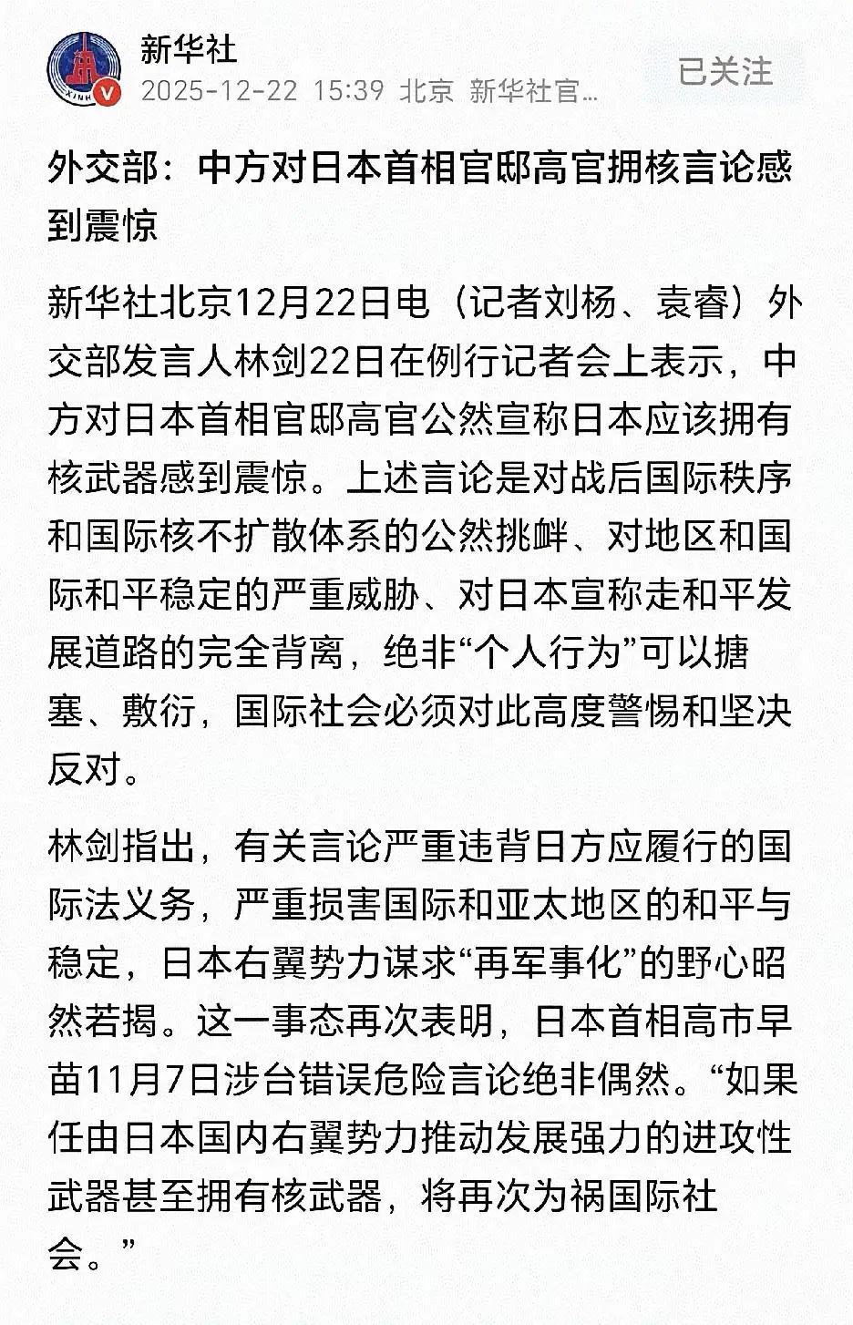 现在那些认为日本拥核美国第一个会翻脸的中国人清醒了不? 自从日本新鬼子曝出逆天言论后,谁旗帜鲜明地站在中国这边? 只有被那些自由派公知们瞧不上的朝鲜,态度最鲜明,立场最坚定! 看不起自己的穷朋友,舔富有的敌人。 美国反对没有? 美国没有反对日本的拥核言论,相反,美国还在污蔑中国新部署了100枚洲际导弹。 谁是我们的朋友谁是我们的敌人?这是中国革命的首要问题! 日本现在还在把自己包装成二战的受害者,居然有些人还信了。 点右上角关注我,我们一起去看这个魔幻的世界