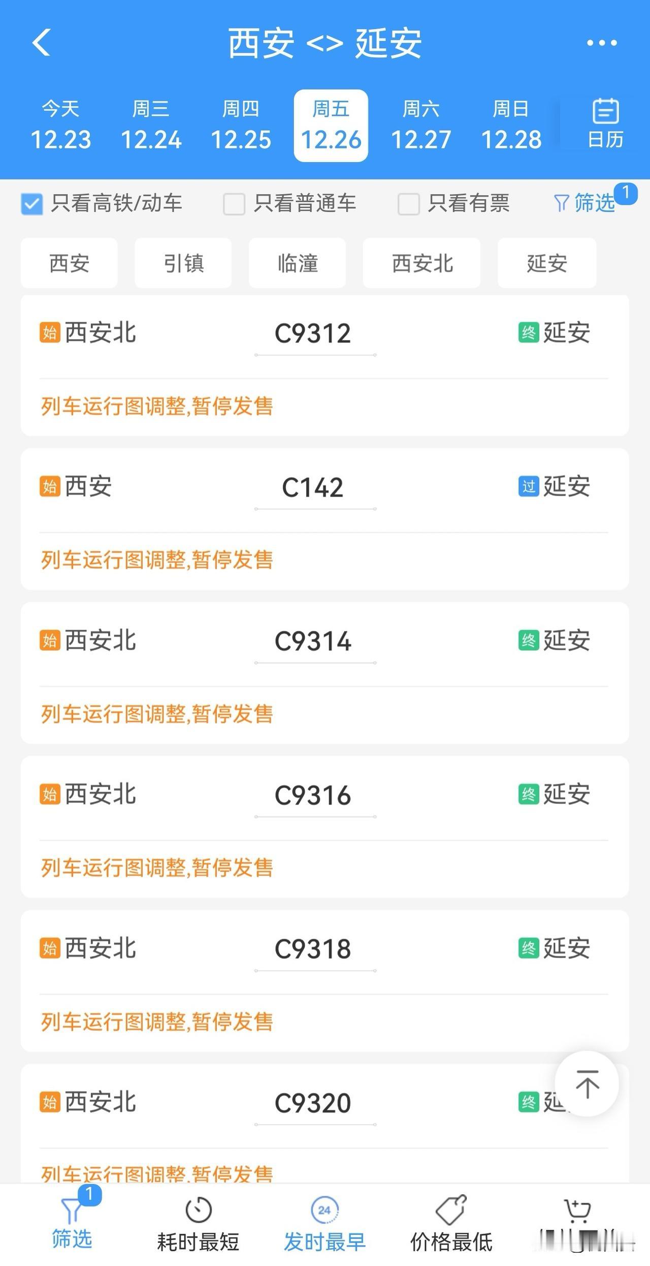 铁路12306App已上线西延高铁开通初期运行车次,具体票价等信息待公布。公开消息称,以西延高铁为标志,中国高速铁路营业总里程届时将突破5万公里。西安 延安