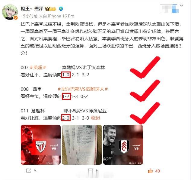 🔥 状态火热,喜报不断!昨天三场方向波胆全部命中,表现超稳!早场的澳狗,再次续写红色篇章!今晚特别宠粉,单子就不在公推发布了!赛事分析只在我的内部群分享,兄弟们一起交流!继续保持热度!📌 今日关注赛事:003 萨德VS迪拜国民连红续写——稳健方向+高倍回报,详情见主页置顶004 尼日利亚VS坦桑尼亚连红续写——稳健方向+高倍回报,详情见主页置顶006 连红续写——稳健方向+高倍回报,详情见主页置顶想吃肉?想跟上这波连红? 别犹豫了,主页置顶,我们家里见!