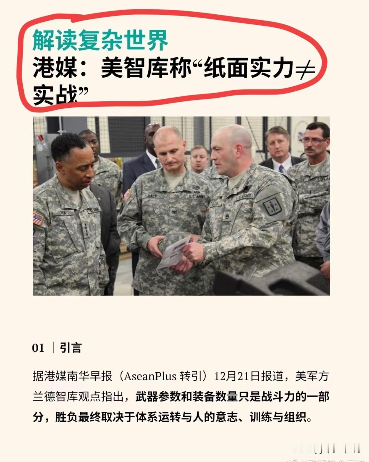 东大纸面实力超过美国,美国就开始吹嘘纸面实力不等于战斗力 美国智库称“纸面实力不等于实战能力”,然而自海湾战争之后美国一直靠纸面实力在吓唬人,就连我们面对曾经美国的纸面实力也被“吓唬”到了。 现在东大的纸面实力超过了美国,美国就开始吹嘘纸面实力不等于实战能力了。 抗美援朝时美国的纸面实力领先我们好几倍,我们用坚强的意志打破了美国纸面实力的神话,现在我们坚强的意志没有任何变化,而且纸面实力也超过了美国。